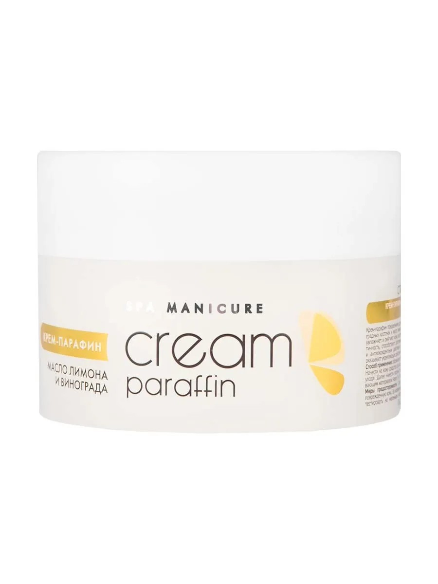 Крем-парафин предназначен для проведения процедуры парафинотерапии. Обеспечивает бережный уход за кожей рук и ног. Интенсивно увлажняет и смягчает кожу, восстанавливая ее гидролипидный баланс. Возвращает упругость и эластичность, способствуя разглаживанию мелких морщинок. Масло виноградных косточек обладает сильным витаминизирующим и антиоксидантным действием. Масло лимона отлично тонизирует и выравнивает цвет кожи. Крем-парафин оказывает укрепляющее действие на ногти, предотвращает их ломкость, смягчает кутикулу. Активные компоненты: Масло виноградных косточек и масло лимона. Способ применения: Небольшое количество крем-парафина интенсивно разогрейте в ладонях, распределите по коже рук тонким слоем, наденьте полиэтиленовые перчатки и сверху укройте теплоудерживающим материалом. Через 10-15 минут снимите перчатки и промокните остатки парафина сухой бумажной салфеткой. Примечание: Не смывать! Не наносить на поврежденную кожу. Во избежание индивидуальной непереносимости компонентов перед применением протестируйте на небольшом участке кожи.