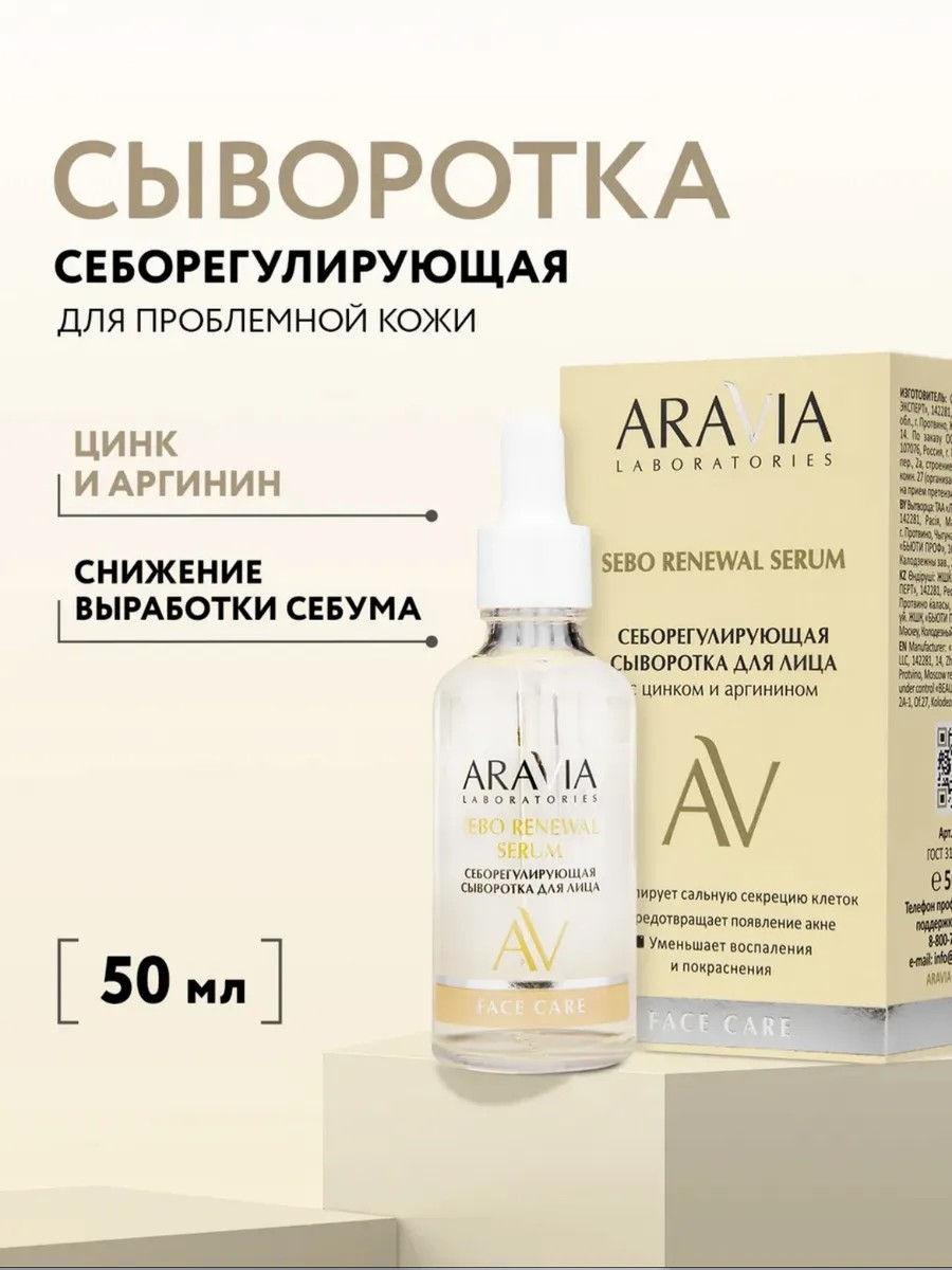 ARAVIA professional А099 Себорегулирующая сыворотка с цинком и аргинином, 50 мл