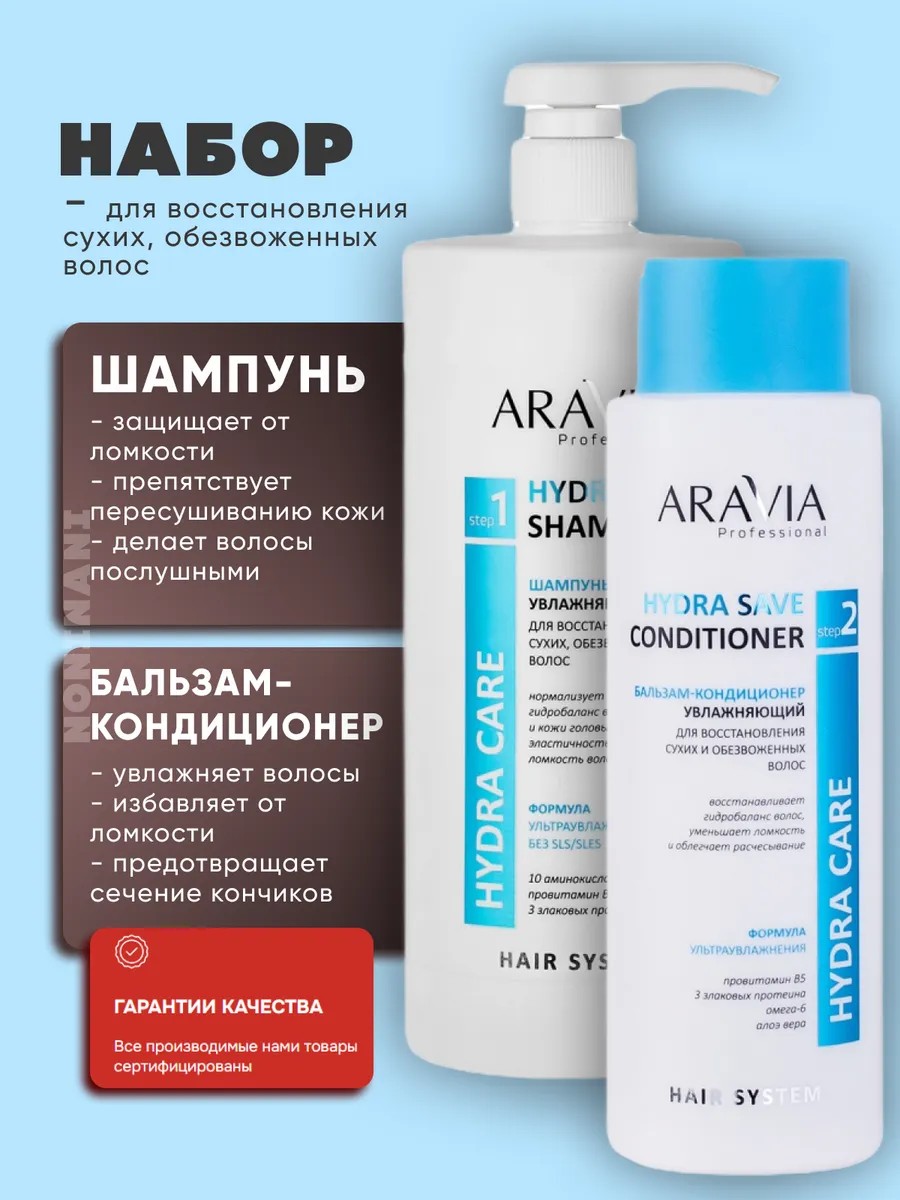 Подарите своим волосам роскошный уход с набором ARAVIA Professional Hydra Save! Этот восстанавливающий набор станет настоящим спасением для ломких и поврежденных волос, возвращая им силу, блеск и шелковистость. Шампунь Hydra Pure Shampoo (1000 мл) деликатно очищает волосы, сохраняя их естественный гидробаланс, а кондиционер Hydra Save Conditioner (420 мл) глубоко увлажняет и питает, предотвращая сечение кончиков. Восстановите здоровье и красоту своих волос с помощью уникальной формулы, обогащенной маслом виноградной косточки, провитамином B5, соком алоэ и 10 аминокислотами. Этот набор - идеальное решение для всех типов волос, особенно для тех, кто страдает от ломкости и секущихся кончиков. Почувствуйте, как ваши волосы преображаются после первого применения! Наслаждайтесь мягкостью, блеском и легкостью расчесывания, а также уверенностью в том, что ваши волосы выглядят здоровыми и красивыми.