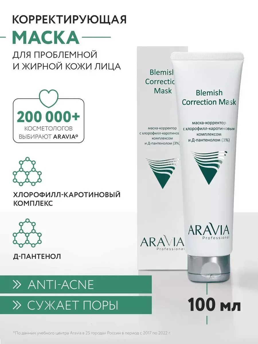 Корректирующая маска Blemish Correction Mask Aravia Professional - идеальное решение для ухода за проблемной, жирной и комбинированной кожей. Благодаря хлорофилл-каротиновому комплексу и д-пантенолу, данная маска обладает выраженным успокаивающим действием на воспалительные элементы, а также эффективно воздействует на жирную кожу, склонную к комедонам, угрям и сальным пробкам.