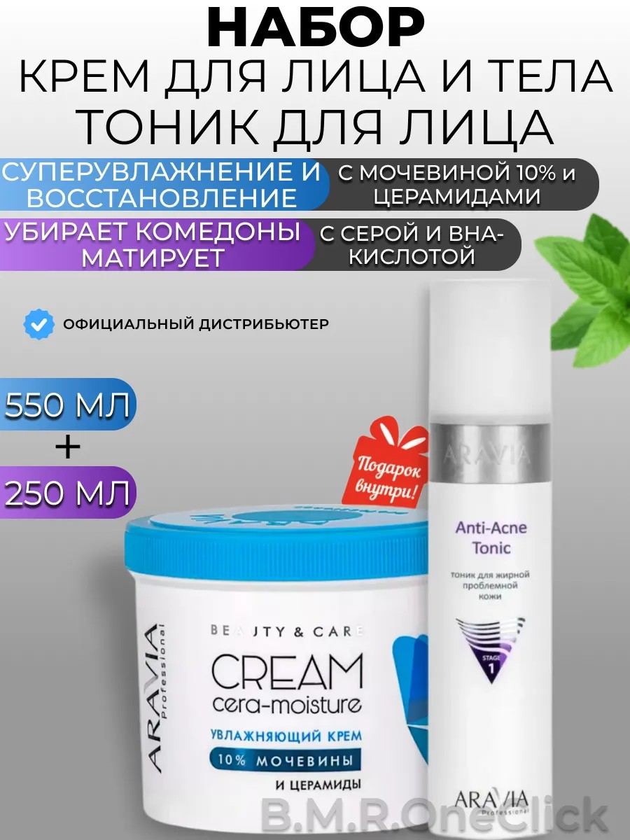 ARAVIA professional Крем для лица и тела и Анти-акне тоник для лица, 550+250 мл