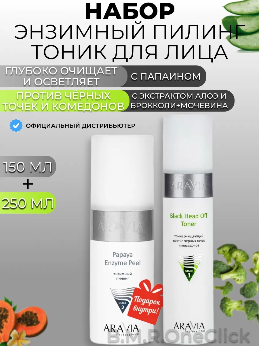ARAVIA professional Энзимный пилинг и Очищающий тоник для лица, 150+250 мл