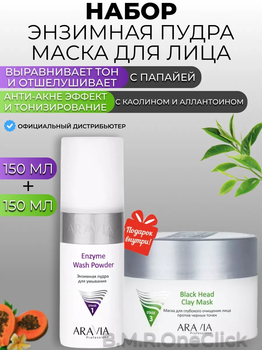 ARAVIA professional Энзимная пудра папайя и Очищающая маска для лица, 150+150мл