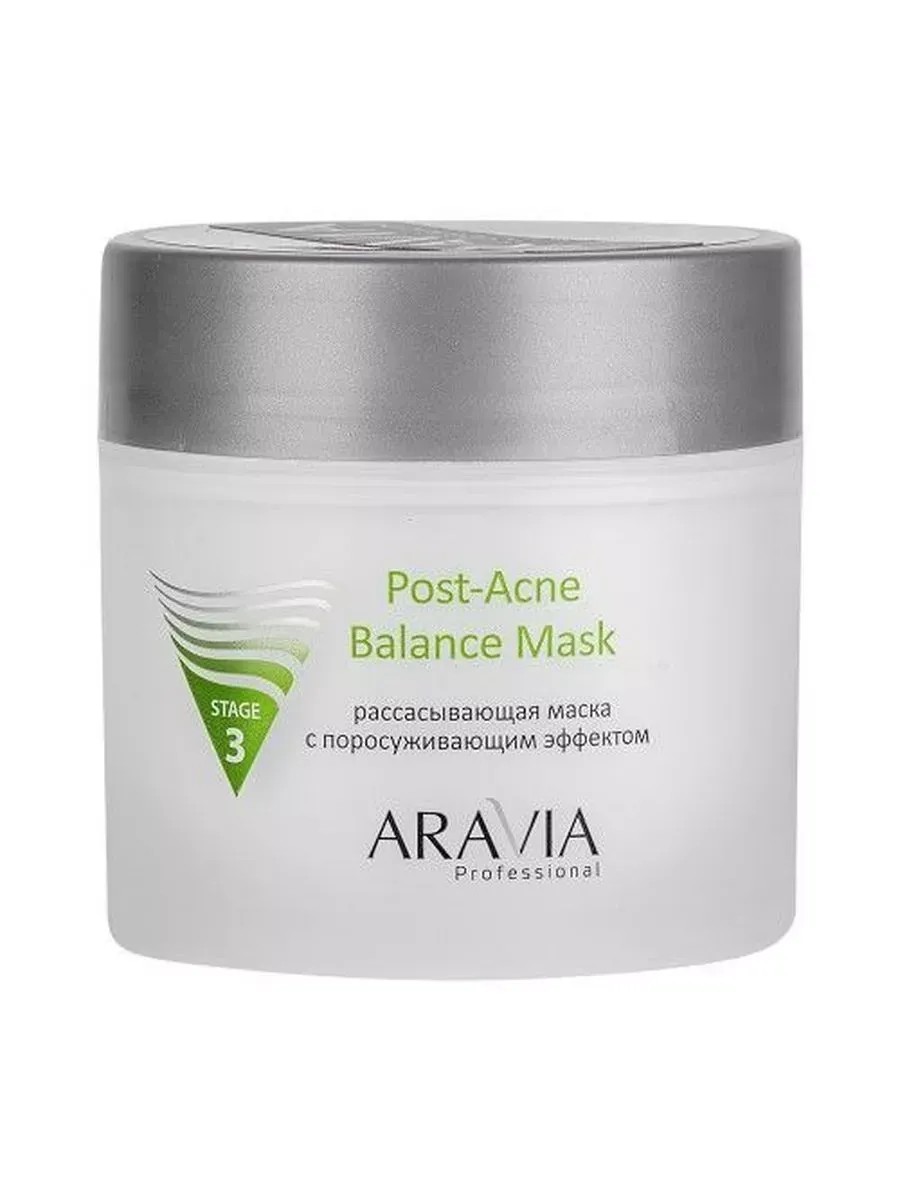 ARAVIA PROFESSIONAL МАСКА ДЛЯ ЛИЦА РАССАСЫВАЮЩАЯ С ПОРОСУЖИВАЮЩИМ ЭФФЕКТОМ 300МЛРоссийская компания ARAVIA - производитель профессиональной косметики для шугаринга, коррекции фигуры, SPA-ухода за руками и ногами, косметики для лица.ARAVIA Professional Рассасывающая маска для лица с поросуживающим эффектом Post- Acne Balance Mask для жирной и проблемной кожиВнешний вид: крем, цвет бежевый с вкраплениями, легкий травяной аромат.Маска разработана для эффективной борьбы с несовершенствами жирной и проблемной кожи, склонной к появлению акне, расширенным порам, избыточному выделению себума, комедонам и постакне.Маска, обладая кератолическим действием, способствует быстрому избавлению от отмерших ороговевших клеток кожи, очищает комедоны, препятствует образованию новых. Способствует устранению отеков и застойных пятен, глубоко очищает, тонизирует и сужает поры, активизирует обменные процессы.Наличие в составе маски серы и бадяги придает маске активное рассасывающее действие, что предотвращает застойные процессы, образование сальных пробок, улучшает микроциркуляцию и цвет кожи.Каолин-адсорбирует излишки кожного сала, очищает кожу от токсинов, подсушивает и контролирует работу сальных желез.Бадяга-обладает активным рассасывающим, противоотечным действиями. Способствует исчезновению застойных пятен, рубцов, пигментных очагов, ускоряет заживление кожных покровов, очищает и сужает расширенные поры, уменьшает количество выделяемого себума.Сера-снижает гиперсекрецию сальных желез, оказывает противовоспалительное и обеззараживающее действия, препятствует образованию комедонов и воспалительных элементов. Возможно ощущение легкого покалывания и зуда. Подходит для домашнего использования.Резу