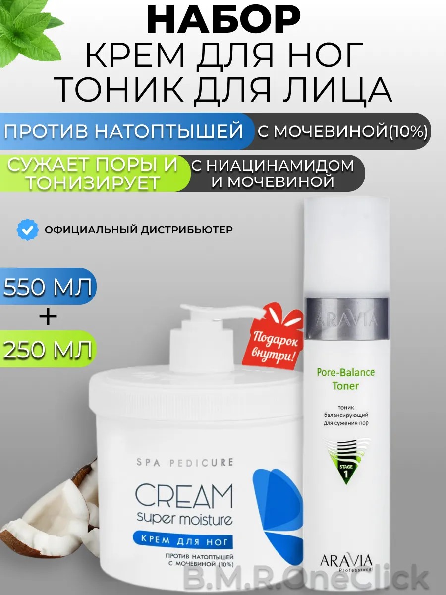 ARAVIA professional Крем для ног и Балансирующий тоник для лица, 550+250 мл