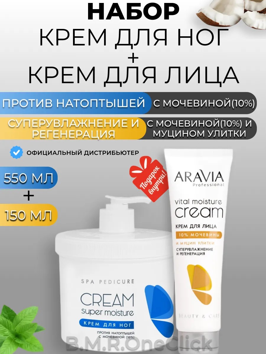 ARAVIA professional Крем для ног и Крем для лица с муцином улитки 550+150 мл