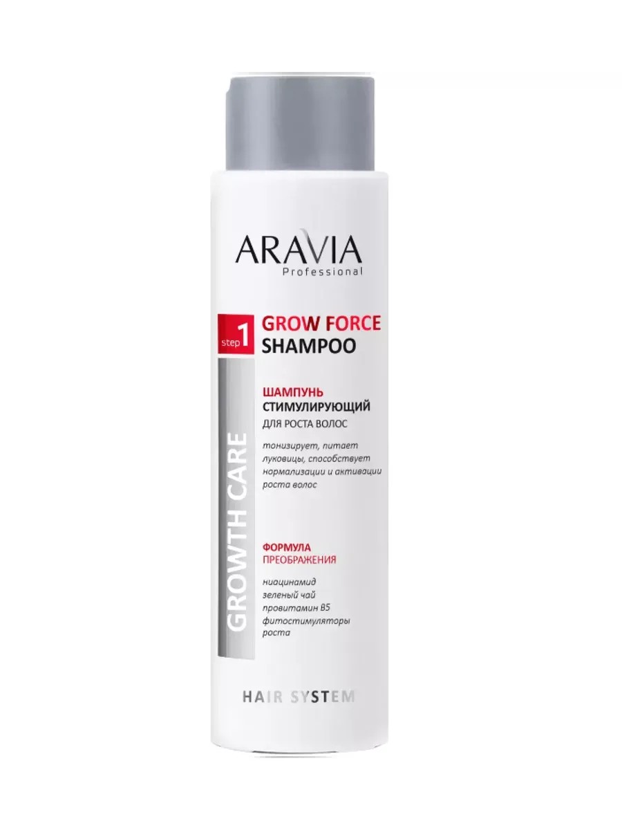 Aravia Professional Шампунь для волос Стимулирующий рост, 420 мл. Шампунь тонизирует, питает луковицы, способствует нормализации и активации роста волос. Стимулирует микроциркуляцию в верхних слоях кожи головы, улучшает доставку кислорода и насыщает волосяные луковицы питательными микроэлементами, обеспечивая мощный импульс для роста и повышения густоты волос. ниацинамид - сглаживает кутикулу волоса, тем самым придавая шелковистость, упругость и эластичность, восстанавливает повреждения, избавляет от чрезмерной сухости, активизирует обменные процесс