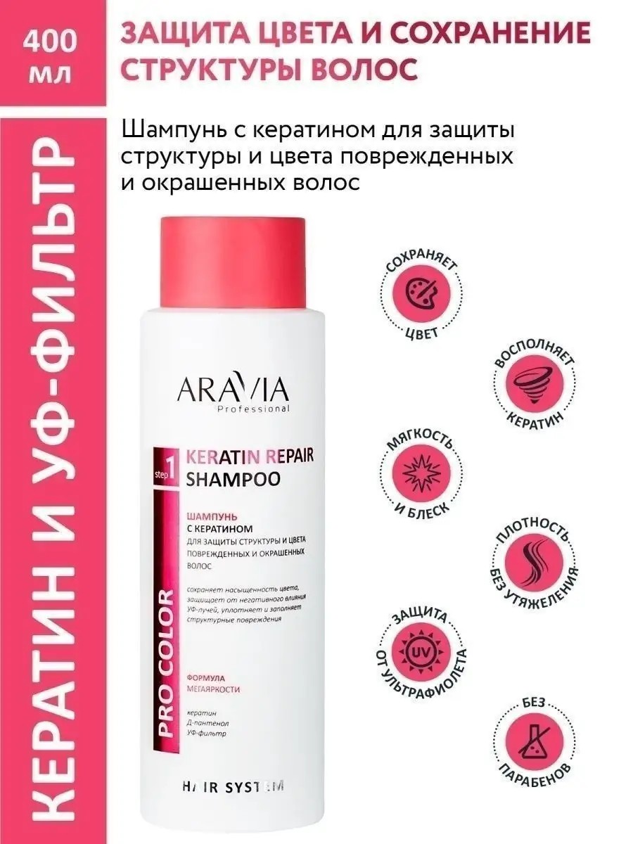 ARAVIA professional Шампунь с кератином для защиты поврежденных волос 400 мл