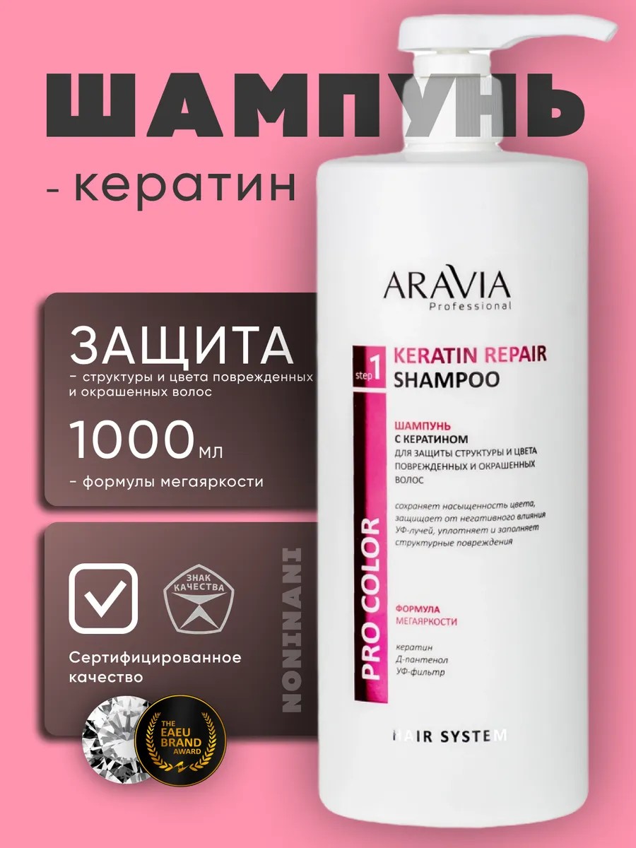 ARAVIA professional Шампунь с кератином для защиты окрашенных волос, 1 литр