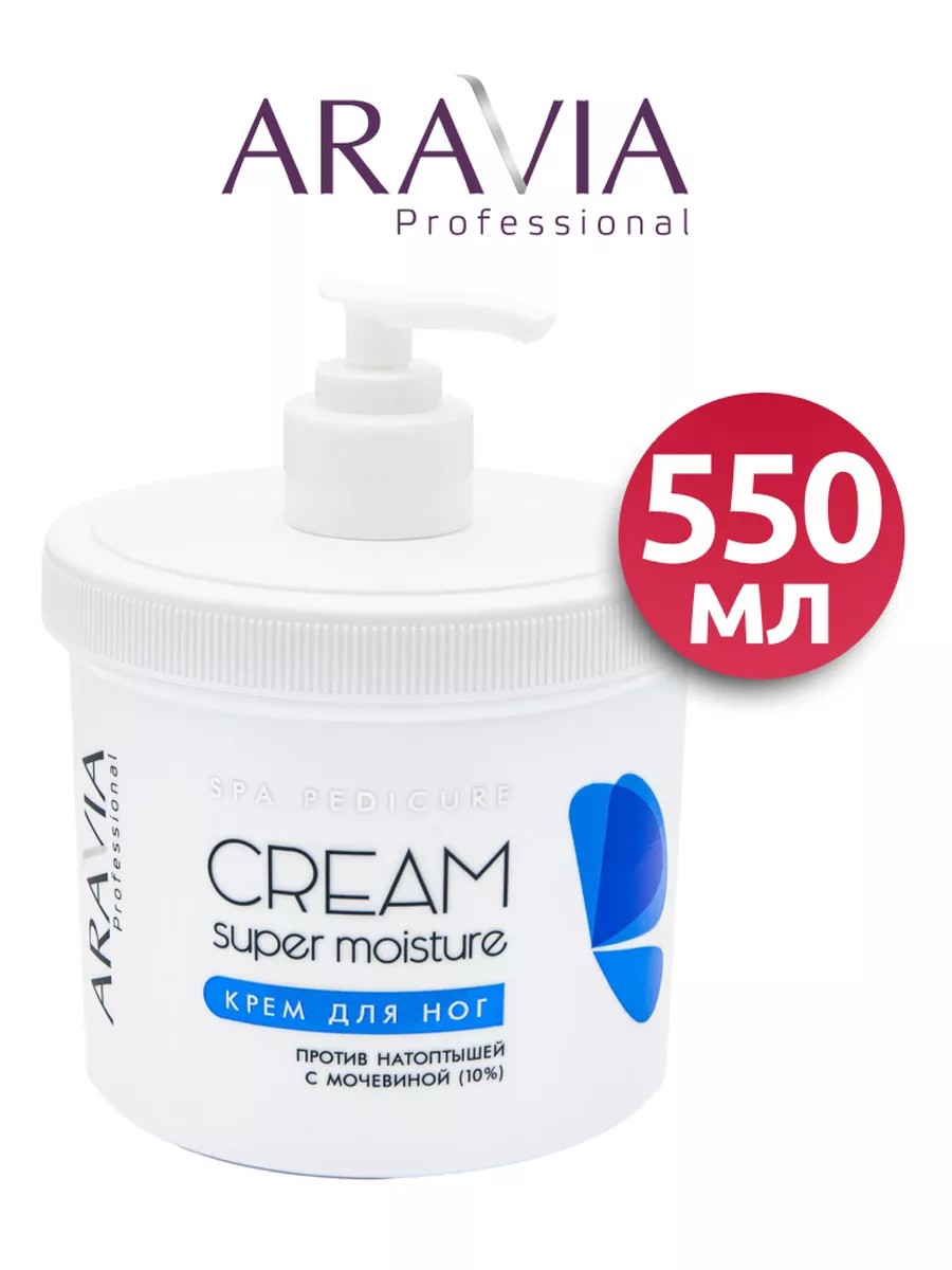 Компания ARAVIA производитель профессиональной косметики для шугаринга, коррекции фигуры, SPA-ухода за руками и ногами, косметики для лица.ARAVIA Professional Крем для ног от натоптышей с мочевиной 10% Super MoistureВнешний вид: Крем, белыйАктивные компоненты: Мочевина (10%), глицерин, аллантоин, масло подсолнечника, масло кокоса, масло авокадо, салициловая кислота, ментол.Крем с суперувлажняющим эффектом для очень сухой кожи стоп. Решает проблемы загрубевшей кожи и гиперкератоза. Содержит 10% мочевины, которая эффективно смягчает кожу стоп, оказывает длительное увлажняющее воздействие, предотвращая появление натоптышей и трещин. Аллантоин в сочетании с натуральным маслом кокоса и авокадо успокаивает, восстанавливает мягкость и эластичность кожи, способствует её заживлению и регенерации. При регулярном применении является эффективным профилактическим средством от появления мозолей и натоптышей. Рекомендуется для завершающего этапа педикюра.Тип кожи: любой, с выраженным гиперкератозом.Результат: Смягчает кожу стоп, оказывает длительное увлажняющее воздействие, предотвращает появление натоптышей и трещин.