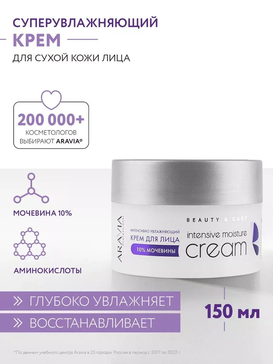 Крем для лица Aravia Intensive Moisture Cream с мочевиной (urea 10%), который быстро впитывается и идеально подходит для сухой кожи, склонной к появлению шелушений. Благодаря своему содержанию мочевины (уреа), природного увлажнителя и кератолитика, данный крем восстанавливает натуральный уровень увлажнения кожи и эффективно справляется с гиперкератозом.