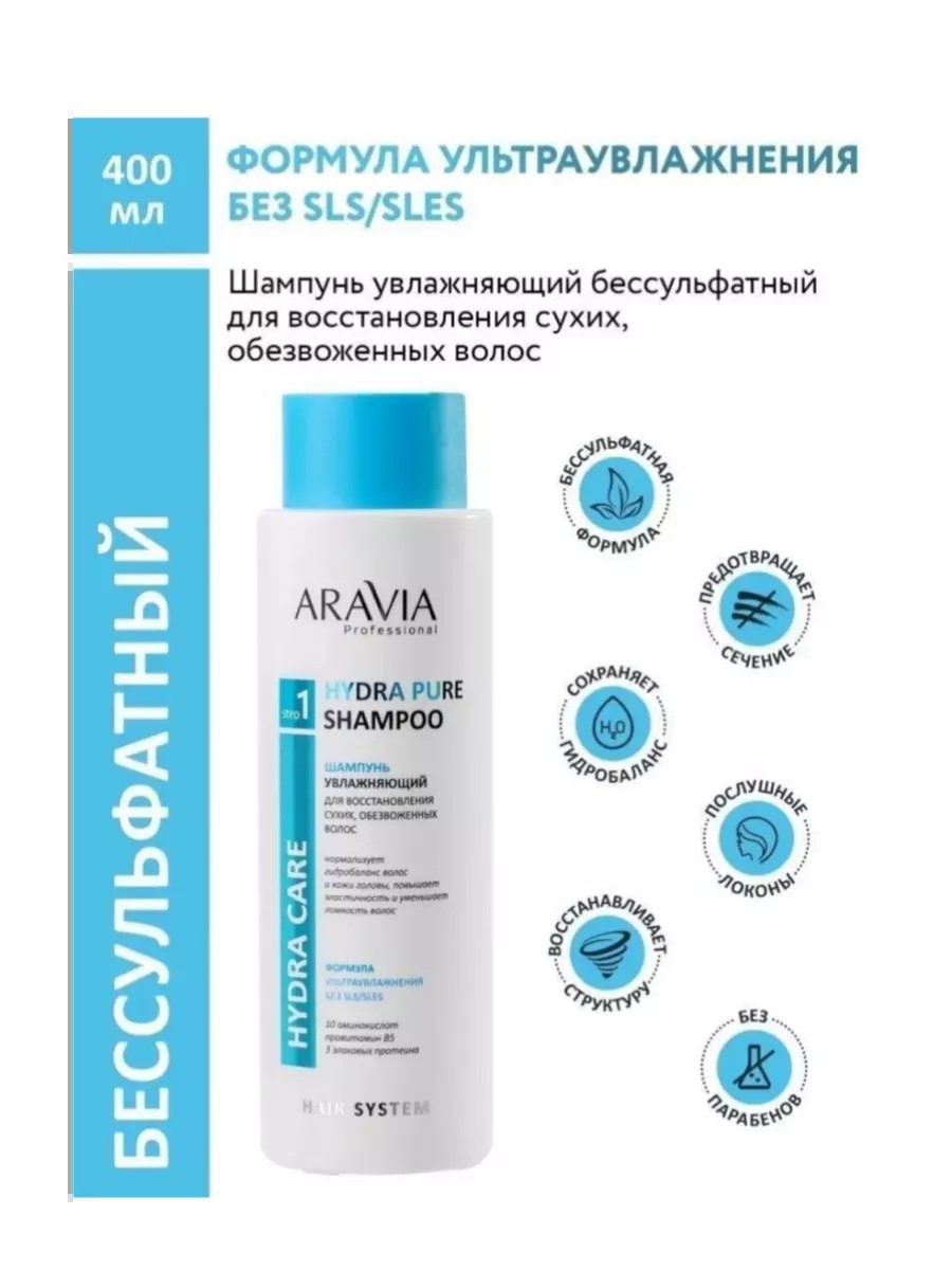 ARAVIA Professional Шампунь увлажняющий для восстановления сухих волос, 400 мл