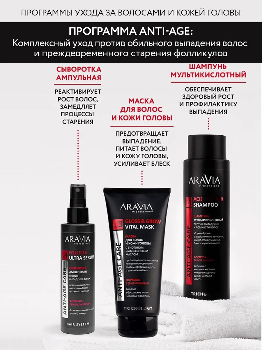 Forget about hair loss and brittleness! The ARAVIA anti-aging set offers a professional and comprehensive approach to restoring and strengthening your hair.