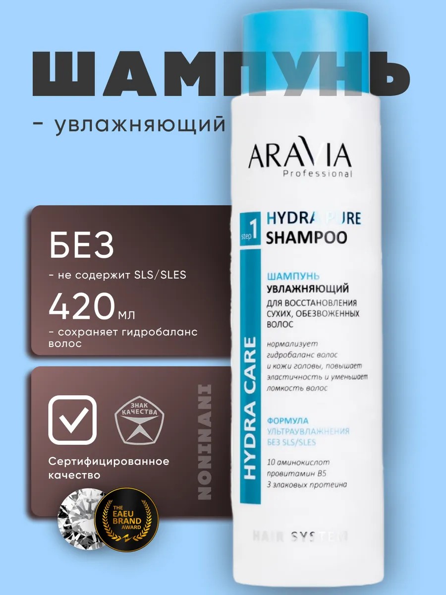 | Комплектация | Hydra Pure Shampoo бессульфатный, 420 мл; Продукт сертифицирован; Не содержит SLS/SLES; Увлажняющий шампунь; шампунь для дома |