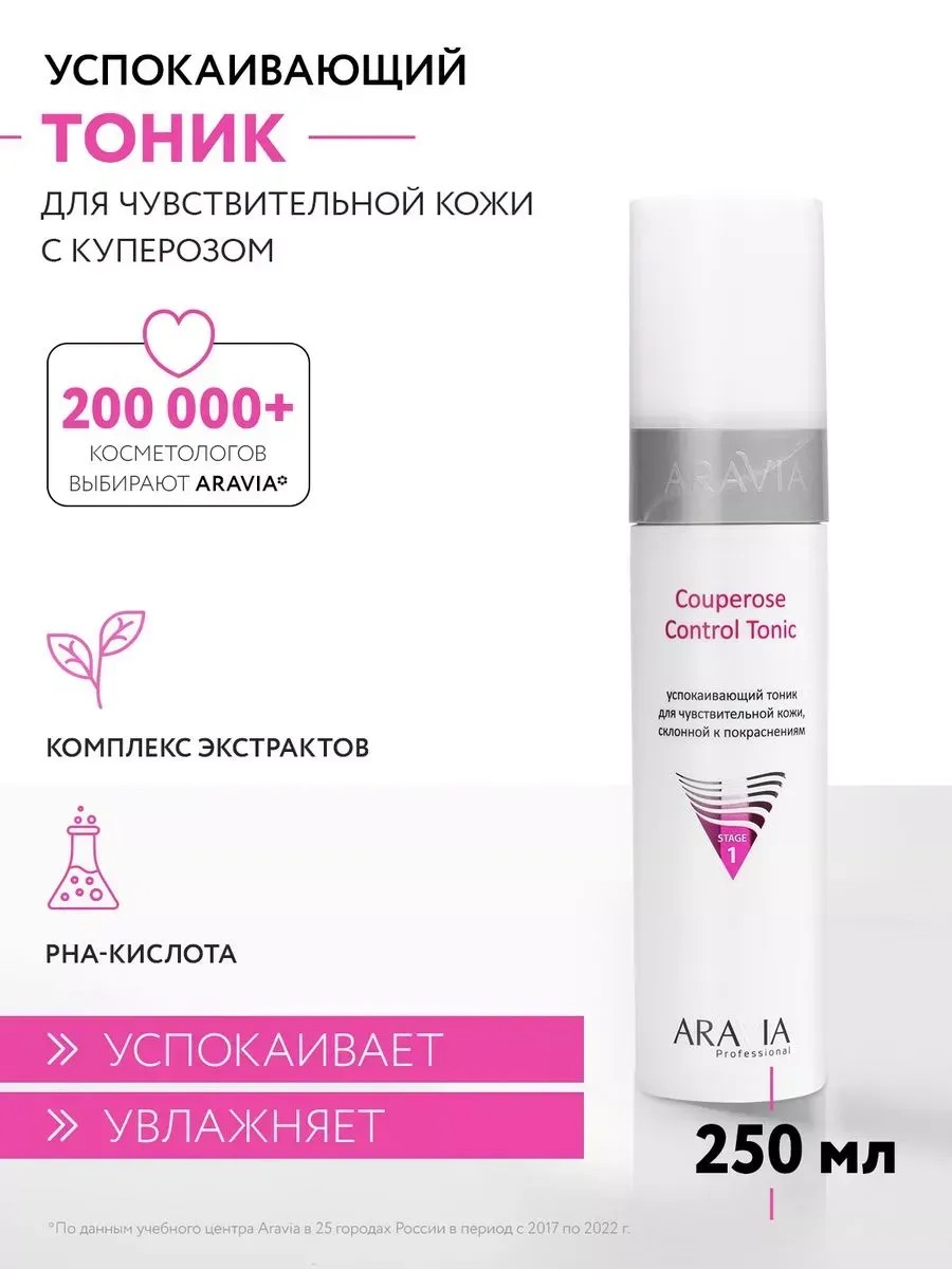 Успокаивающий тоник для чувствительной кожи с куперозом Coupersoe Control Tonic Aravia Professional - это специальное средство профессионального ухода, разработанное с учетом потребностей чувствительной кожи, склонной к покраснениям и с куперозом. С уникальным сочетанием мягких РНА-кислот в составе, тоник помогает улучшить микроциркуляцию, укрепить сосуды, восстановить барьеры кожи и снизить проявления купероза. Его использование как часть профессиональной процедуры увеличивает эффективность последующего ухода, делая кожу более здоровой и ухоженной.