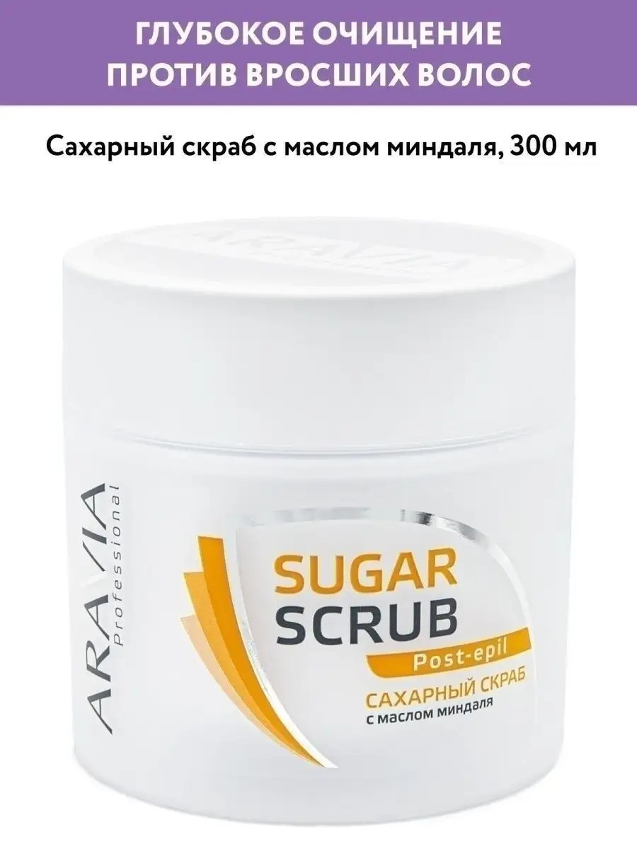 sugar scrub for deep cleansing, nourishing the skin, and preventing ingrown hairs after waxing. Organic sugar crystals gently and delicately remove dead skin cells, smoothing the skin's surface. Almond and peach kernel oils intensively nourish and moisturize the skin, leaving it smooth and velvety. Shea butter and vitamin E restore the skin's natural protective barrier, allowing it to retain its natural moisture levels for a long time. Directions: Apply a small amount of scrub to damp skin with light massaging movements. Scrub until the sugar granules are completely dissolved, wetting your hands with water as needed. Rinse off any remaining product.