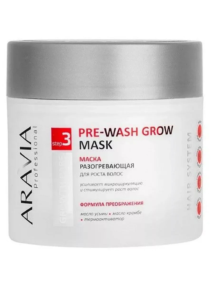 ARAVIA PROFESSIONAL WARMING HAIR GROWTH MASK 300ML. ARAVIA brand - Russian professional cosmetics for facials, sugaring, hair removal and paraffin therapy, body shaping, and SPA hand and foot care. Precautions: Do not apply to broken skin and avoid contact with eyes. In case of contact with eyes, rinse thoroughly with water. Test on a small area of ​​skin before use.