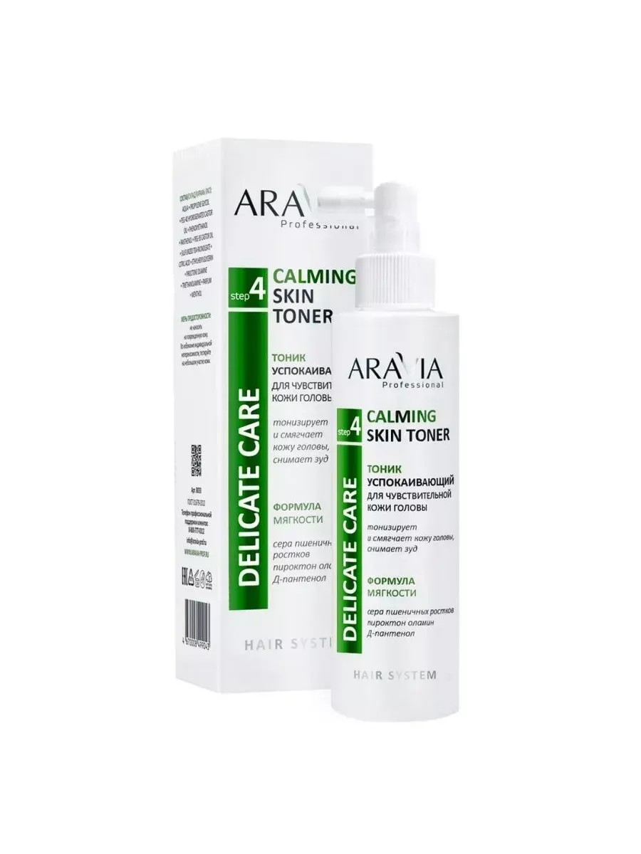 Aravia Тоник успокаивающий для чувствительной кожи головы Calming Skin Toner, 150 мл, 1 штука. Нормализующий тоник для чувствительной кожи головы в удобном формате спрея. Содержит серу пшеничных ростков, которая способствует обновлению эпидермиса, деликатно воздействуя на его ороговевшие клетки. Пироктон оламин отлично тонизирует кожу, купирует зуд и замедляет воспалительные процессы. Обладающий успокаивающим и кондиционирующим свойствами Д-пантенол является незаменимым многофункциональным компонентом и благотворно влияет на кожу головы и волосы: активно увлажняет и питает, способствует профилактике микротрещин и быстрому восстановлению поврежденных тканей. Рекомендуется применять тоник курсами для обеспечения комфортных ощущений в периоды повышенной чувствительности кожного покрова головы. Способ применения: Распылить средство на чистую кожу головы после мытья, разделяя волосы на проборы. Провести легкий массаж. Не загрязняет волосы и не требует смывания. Состав: Aqua, Propylene Glycol, PEG-40 Hydrogenated Castor Oil, Phenoxyethanol, Panthenol, PEG-35 Castor Oil, Sulfurized TEA-Ricinoleate, Citric Acid, Ethylhexylglycerin, Piroctone Olamine, Triethanolamine, Parfum, Menthol.