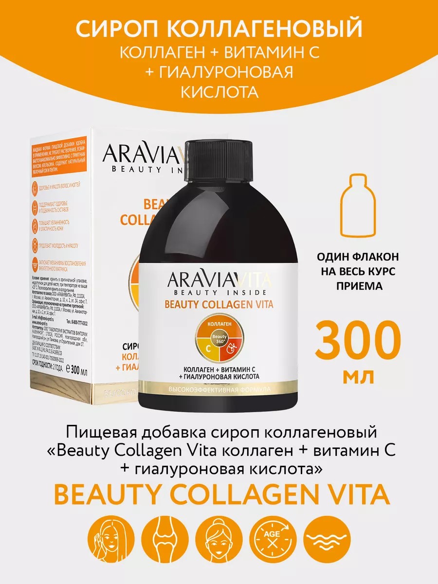 Aravia vita сироп коллаген, витамин С, гиалуроновая кислота