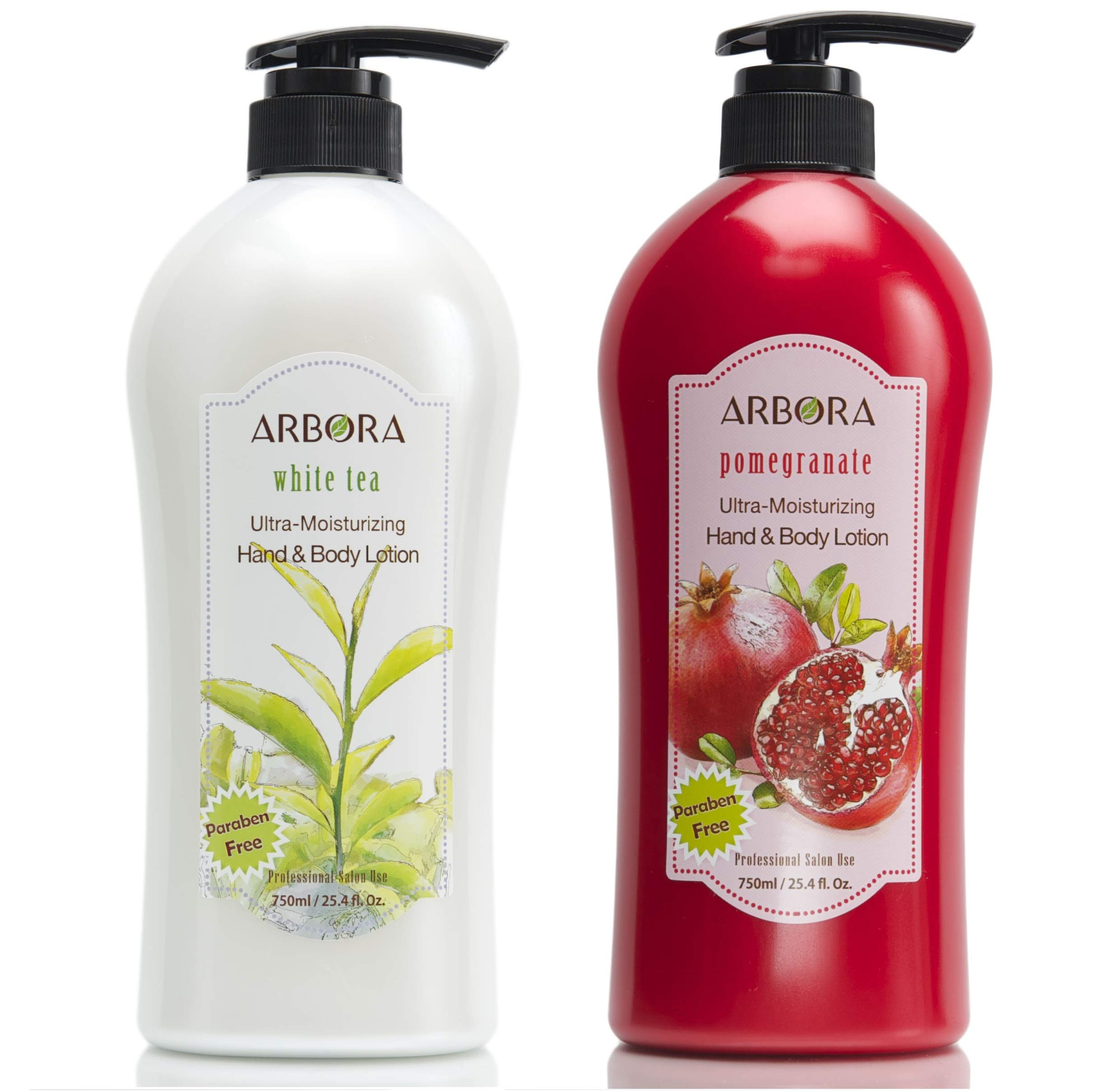 ARBORA Combo Pack of 2 Hand & Body Lotion White Tea Plus Pomegranate Jumbo Size 25.4OZ/750ML Paraben Free Natural Ultra-Moisturizing K-Beauty Professional Massage Lotion Original from Korea