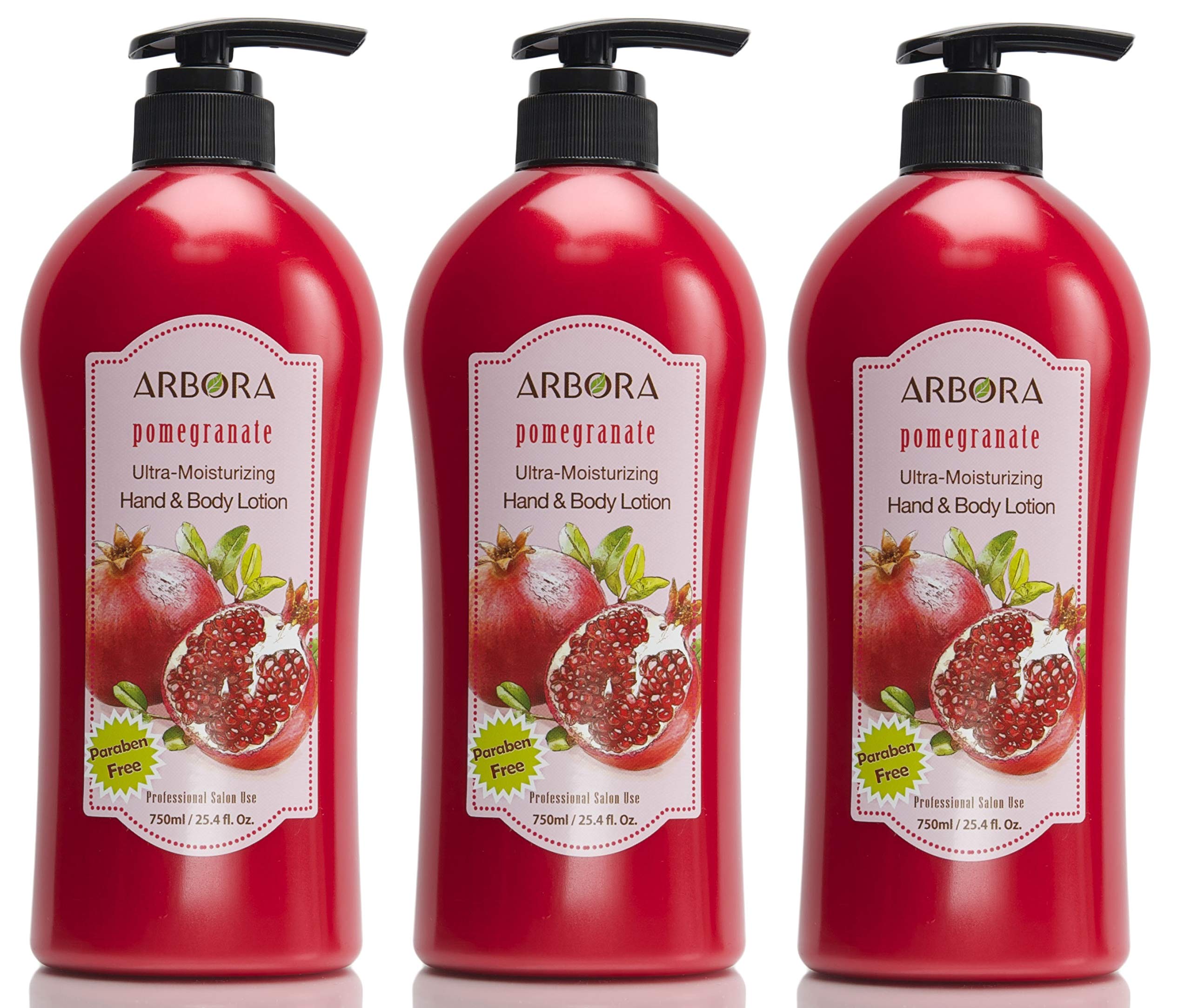 ARBORA Hand & Body Lotion POMEGRANATE 25.4OZ/750ML Paraben Free Natural Ultra-Moisturizing Professional Massage Lotion Original from Korea Pack of 3