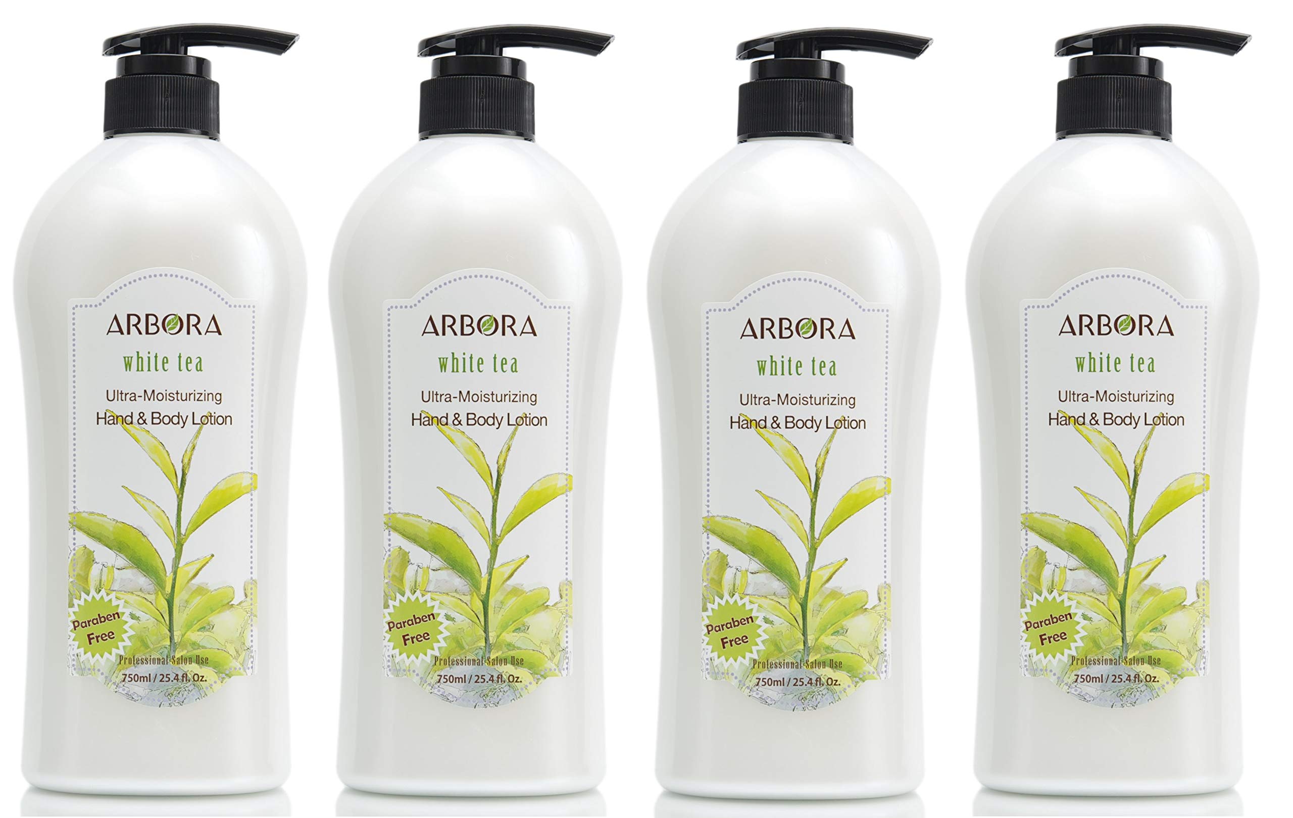 ARBORA Hand & Body Lotion WHITE TEA 25.4OZ/750ML Paraben Free Natural Ultra-Moisturizing Professional Massage Lotion Original from Korea Pack of 4