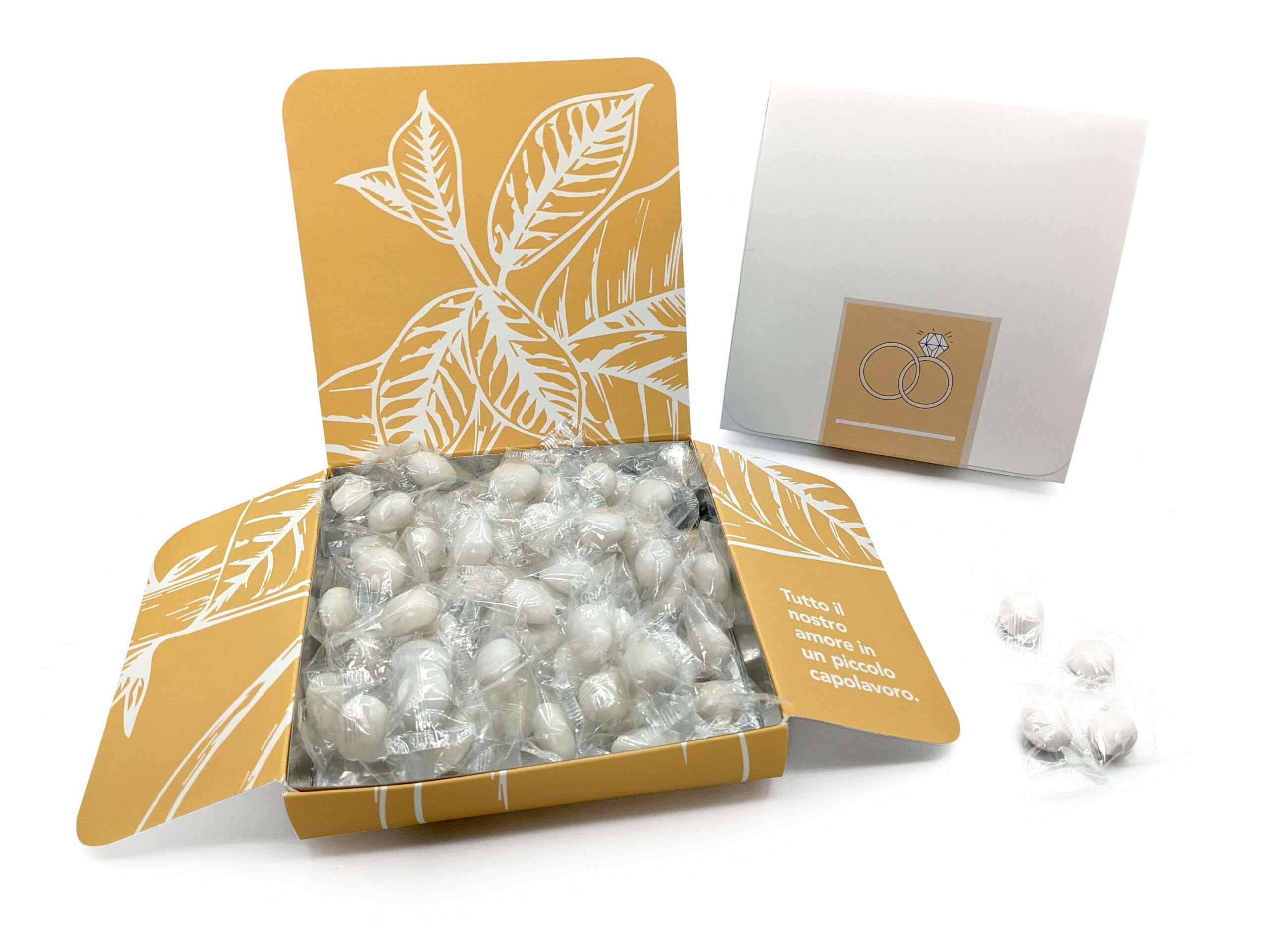 Classic handcrafted sugared almonds and chocolate, individually wrapped. Delivered in an elegant and refined box with a customizable label. Perfect for weddings, birthdays, first communions, and confirmations. Ideal for creating sugared almond favors for any occasion or event. The package contains 400g of sugared almonds, approximately 64 pieces. Allergens: ALMONDS. Gluten-free. Store in a cool, dry place, max 20 C (68 F). INGREDIENTS Sugar, white and dark chocolate, almonds, maltodextrin, rice starch, flavorings. Glazing agent: carnauba wax. SAFETY WARNING Please handle sugared almonds carefully to avoid the risk of choking, especially when used around children. See moreGluten-free. Perfect for weddings, birthdays, first communions, and confirmations. 400g box (64 pieces). Elegant and refined packaging in thin cardboard with a customizable label. Single-serving, individually wrapped. Handcrafted sugared almonds with whole roasted natural almonds and double dark and white chocolate.Confetti Arbues Artisanales Chocolat Commandes Blanches Enveloppées individuellement – Trousse 400 g – Parfait pour mariage, anniversaire, première communion, confirmationDESCRIPTION DU PRODUIT DESCRIPTION DU PRODUIT Dragées classiques artisanales, avec amande et chocolat, blanches emballées individuellement. Livré dans un étui élégant et raffiné, avec une étiquette personnalisable. A offrir lors de mariages, anniversaires, premières communions, confirmations. Idéal pour composer des dragées pour toute occasion ou événement. Le paquet comprend 400 g de dragées, 64 pièces environ. Allergènes : AMANDES Ne contient pas de gluten. Conserver dans un endroit frais et sec, max 20 C INGRÉDIENTS Sucre, chocolat blanc et fondant, amandes, maltodextrine, amidon de riz, arômes. Agent de revêtement: cire carnauba AVERTISSEMENT DE SÉCURITÉ Veuillez manipuler les dragées avec soin pour éviter les risques d'étouffement, en particulier lorsqu'il est utilisé en présence d'enfants. Voir plusNe contient pas de gluten. Parfait à offrir lors de mariages, anniversaires, premières communions, confirmations. Trousse de 400 g (64 pièces). Emballage élégant et raffiné en carton fin avec étiquette personnalisable. Unidoses, emballées individuellement. Dragées artisanales avec amande naturelle entière grillée et double chocolat noir et blanc.