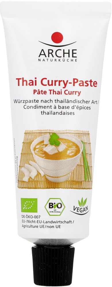 This organic exotic spice paste gives soups, sauces, and curries a pleasant sharpness and a fresh, fruity note. Delicious. Organic vegan curry paste. Perfect for complementing vegetarian curry dishes with tofu, crunchy vegetables, and a splash of coconut milk. Comes in a convenient tube for easy portioning. INGREDIENTS Ingredients: Ginger, pineapple juice concentrate, cane sugar , sea salt, sunflower oil, basic wine vinegar , onion powder , turmeric powder , galangal powder , lemon juice concentrate , chili powder, coriander , cumin flour, fennel , mandarin essential oil. organic ingredients. Organic farming, ingredients from organic farming. Certified organic aquaculture.