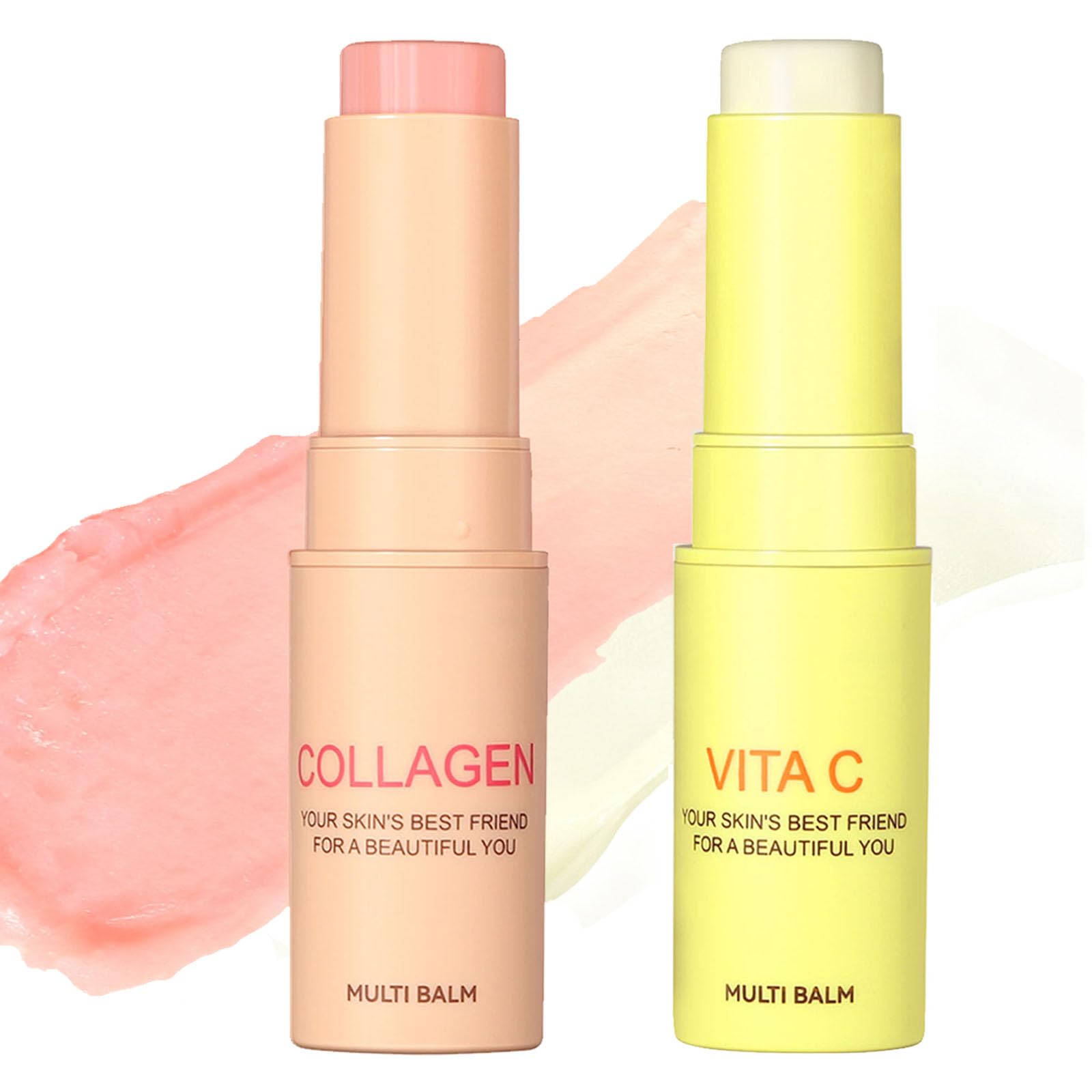 ARCHIDATE Collagen Multi Moisturizing Face Balm Stick & Vitamin C Face Balm Stick Anti-Aging Reduce Fine Lines Tighten Skin Enhances Elasticity & Plump Deeply Moisturize Skin