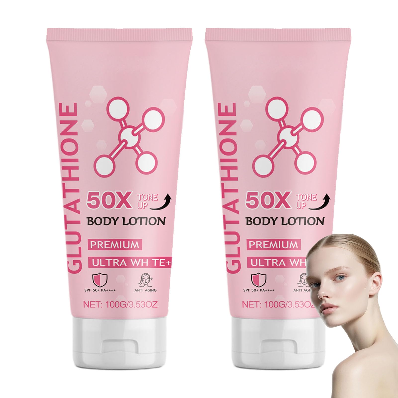 Improve the Skin and Enhance Skin Firmness Glutathione 50x tone up body lotion effectively improves dull skin, significantly increases skin firmness, enhances skin texture, and makes the skin more delicate and smooth Deep Nourishment and Moisturizing Glutathione body cream is added with highly effective moisturizing ingredients such as sodium hyaluronate. The glutathione lotion quickly penetrates the deep layers of the skin, replenishing a large amount of moisture and nutrients to the skin, deeply moisturizing dry skin for a long time, and enhancing the skin barrier function. Lightweight Texture and is Not Sticky Glutathione body lotion features a unique light texture, silky smooth and soft, which is instantly absorbed by the skin without leaving a heavy or greasy feeling on the surface. After use, the skin feels fresh and comfortable, without any burden Suitable for all Skin Types Whether you have dry skin, oily skin, combination skin or sensitive skin, this glutathione body cream is the ideal choice, meeting the skincare needs of all skin types. Package Includes: 2 Glutathione 50x Body Lotion[For all Skin Type]: Whether you have dry skin, oily skin, combination skin or sensitive skin, this glutathione cream can be a great helper for your skin care. [Lightweight Texture]: Glutathione niacinamide body lotion has a lightweight and fine texture. With just a gentle application, it can be quickly absorbed by the skin without leaving any greasy feeling on the surface. After application, the skin feels fresh and comfortable, making it convenient for you to quickly put on clothes after application without affecting daily activities. [Mild Ingredients]: Our glutathione 50x tone body lotion is rich in ingredients such as glutathione and hyaluronic acid. It improves the skin while moisturizing it. During use, it does not cause any burden to the skin, allowing you to enjoy a comfortable skin care experience. [Deep Moisturizing]: Glutathione body cream is rich in various moisturizing factors, providing long-lasting moisturizing effects for the skin. It forms a protective film on the skin surface, locking in moisture and preventing the skin from drying out and peeling, keeping the skin hydrated and soft at all times. [Glutathione 50x Body Lotion]: Glutathione body lotion penetrates deep into the skin, effectively improving dull skin, significantly increg skin firmness, enhancing skin quality, and making the skin more delicate and smooth.