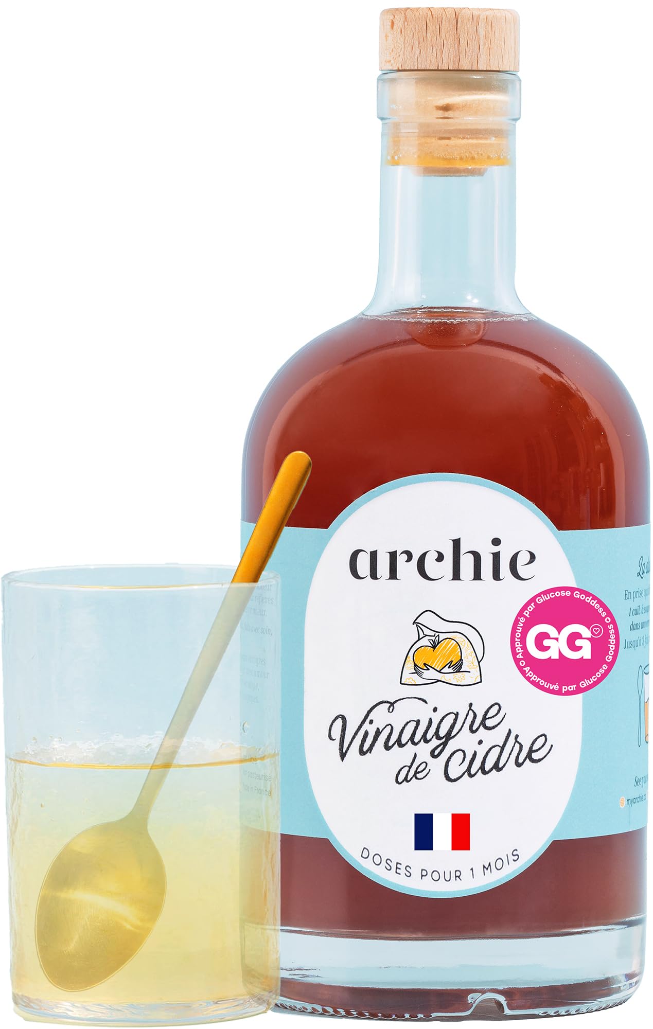 {ENDORSED BY JESSIE INCHAUSPÉ AKA GLUCOSE GODDESS}: "Archie is my favorite apple cider vinegar. One tablespoon of Archie's apple cider vinegar in water accomplishes one of my tips for stabilizing your blood sugar. It's delicious and easy to incorporate into your wellness routine." Glucose Goddess. {ENDORSED BY JESSIE INCHAUSPÉ AKA GLUCOSE GODDESS}: "Archie is my favorite apple cider vinegar. One tablespoon of Archie's apple cider vinegar in water accomplishes one of my tips for stabilizing your blood sugar. It's delicious and easy to incorporate into your wellness routine." Glucose Goddess. { MADE AND DEVELOPED IN FRANCE }: Archie, revolutionizes cider vinegar, preserves French cider-making traditions and contributes to the conservation of the century-old orchards of Normandy, bringing together an ecosystem of partners dedicated to the well-being of people and the earth. { STRENGTHENS THE IMMUNE SYSTEM }: Apple cider vinegar, a natural antibacterial, acts as a 100 natural disinfectant, thanks to its antimicrobial acetic acid, antioxidants, and probiotic "mothers" promoting a healthy gut microbiota. { PROMOTES SLEEP }: Better digestion promotes quality sleep. Our vinegar helps optimize digestion, thus promoting the natural production of melatonin, the sleep hormone. This helps you fall asleep faster and enjoy more restful sleep. In addition, these benefits help reduce stress and anxiety, offering a holistic approach to your well-being. { BETTER DIGESTION }: Apple cider vinegar balances stomach acidity, reducing heartburn and bloating. It helps break down food more easily, promoting gentle digestion. Its prebiotics support healthy bowel movements, for regular bowel movements and the elimination of toxins. { REGULATES BLOOD SUGAR }: Apple cider vinegar, thanks to acetic acid, reduces glycemic impact by 30 . Taking one spoonful before meals helps regulate blood sugar and insulin, limiting the conversion of sugars into fats. { HOW TO TAKE IT? }: Take one tablespoon of apple cider vinegar diluted in a glass of water up to three times a day: in the morning to detoxify, before meals to regulate blood sugar, and in the evening to promote digestion and sleep.{ APPROUVÉ PAR JESSIE INCHAUSPÉ ALIAS GLUCOSE GODDESS } : "Archie est mon vinaigre de cidre préféré. Un cuillère à soupe de vinaigre de cidre Archie dans de l'eau permet de réaliser un des conseils de ma méthode pour stabiliser votre glycémie. Il est délicieux et facile à intégrer dans routine bien-être" Glucose Goddess. { APPROUVÉ PAR JESSIE INCHAUSPÉ ALIAS GLUCOSE GODDESS } : "Archie est mon vinaigre de cidre préféré. Un cuillère à soupe de vinaigre de cidre Archie dans de l'eau permet de réaliser un des conseils de ma méthode pour stabiliser votre glycémie. Il est délicieux et facile à intégrer dans routine bien-être" Glucose Goddess. { FABRIQUÉ ET DÉVELOPPÉ EN FRANCE } : Archie, révolutionne le vinaigre de cidre, préserve les traditions cidricoles françaises et contribue à la conservation des vergers centenaires de Normandie, rassemblant un écosystème de partenaires dévoués pour le bien-être des Hommes et de la terre. { RENFORCE LE SYSTÉME IMMUNTAIRE } : Le vinaigre de cidre, antibactérien naturel, agit comme un désinfectant 100 naturel, grâce à son acide acétique antimicrobien, ses antioxydants, et ses "mères" probiotiques favorisant un microbiote intestinal sain. { FAVORISE LE SOMMEIL } : Une meilleure digestion favorise un sommeil de qualité. Notre vinaigre aide à optimiser la digestion, favorisant ainsi la production naturelle de mélatonine, l'hormone du sommeil. Cela vous aide à vous endormir plus rapidement et à profiter d'un sommeil plus réparateur. De plus, ces bienfaits aident à réduire le stress et l'anxiété, offrant une approche globale pour votre bien-être. { MEILLEURE DIGESTION } : Le vinaigre de cidre équilibre l'acidité de l'estomac, réduisant les brûlures et les ballonnements. Il aide à décomposer les aliments plus facilement, favorisant une digestion légère. Ses prébiotiques soutiennent un transit intestinal sain, pour des selles régulières et une élimination des toxines. { REGULE LA GLYCÉMIE }: Le vinaigre de cidre, grâce à l'acide acétique, réduit l'impact glycémique de 30 . Prendre une cuillère avant les repas aide à réguler la glycémie et l'insuline, limitant la conversion des sucres en graisses. { COMMENT LE PRENDRE ? }: Prenez une cuillère à soupe de vinaigre de cidre diluée dans un verre d'eau jusqu'à trois fois par jour : le matin pour détoxifier, avant les repas pour réguler la glycémie et le soir pour favoriser la digestion et le sommeil.