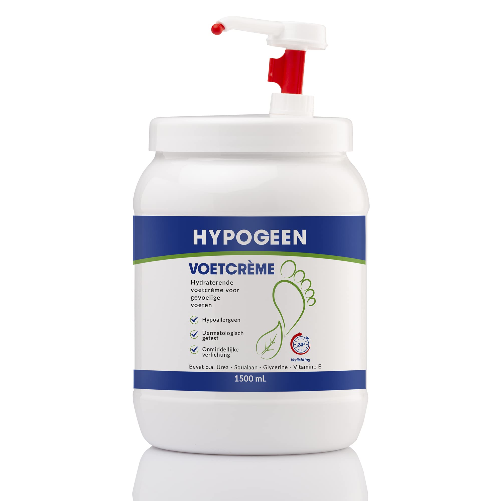 This specialist formula combines squalane, vitamin E, urea, hamamelis water and piroctone olamine for optimal cosmetic care of dry and sensitive feet. Squalane, a natural hydrator with antioxidant properties, helps keep the skin supple and supports a smooth appearance. Thanks to its perfume-free and pH-neutral composition, this foot cream is ideal for daily use, even for sensitive skin. The cream is quickly absorbed and provides long-lasting comfort without feeling greasy. Benefits Intensive hydration for dry and rough feet Supports supple and smooth skin Contains squalane and vitamin E for extra care Softens the skin and helps maintain its natural balance Absorbs quickly without a greasy feeling Suitable for sensitive skin thanks to hypoallergenic formula Usage advice Apply a small amount of foot cream daily and gently massage it into the feet. Pay extra attention to dry areas. Leave on briefly for a comfortable, nourishing feeling during the day. Ingredients INCI: Aqua Glycerin Urea Caprylic Capric Triglyceride Cetyl Alcohol Triacetin PEG-100 Stearate C10-18 Triglycerides Ethylhexyl Stearate Glyceryl Laurate Phenoxyethanol Simmondsia Chinensis Seed Oil Tocopheryl Acetate Squalane Citronellyl Methylcrotonate Propylene Glycol Panthenol Monosodium Citrate Hamamelis Virginiana Water Tetrasodium Glutamate Diacetate Piroctone Olamine Alcohol Citric Acid Butylene Glycol Improved Recipe Hypogenic stands for innovative skin care. Our updated formulas are free of microplastics and silicones, and provide intensive care for a healthy appearance of the skin. In this way we contribute to both skin comfort and sustainability. About Hypogeen Hypogeen develops hypoallergenic skin care products especially for dry and sensitive skin. The products are rich in skin-related and skin-related ingredients such as triglycerides, lecithin, urea and Vitamin E. Hypogeen offers a complete line for hand, foot, face and body care, available at pharmacies, pedicures and drugstores. INGREDIENTS Aqua Glycerin Urea Caprylic Capric Triglyceride Cetyl Alcohol Triacetin PEG-100 Stearate C10-18 Triglycerides Ethylhexyl Stearate Glyceryl Laurate Simmondsia Chinensis Seed Oil Panthenol Squalane Hamamelis Virginiana Water Tocopheryl Acetate Phenoxyethanol Citronellyl Methylcrotonate Propylene Glycol Butylene Glycol Monosodium citrate Tetrasodium glutamate diacetate Alcohol Citric acid Piroctone Olamine SAFETY WARNING For external use only See moreFree from perfume, dyes, Vaseline, paraffin, microplastics and silicone: good for your skin and good for our planet. Enriched with squalane and vitamin E: stimulates skin recovery, improves elasticity. Contains triglycerides, lecithin and urea for optimal balance. Intensively nourishing cream for extremely dry and sensitive feet. 24 hour hydration: ideal for repairing cracked heels. Hypogene is the hypoallergenic skin care line for all skin types. Suitable for eczema, psoriasis, skin allergies and sensitive skin. Good health starts with good daily care. With Hypogenic Foot Cream you reduce the risk of cracks, flaking and calluses.Voetcrème - hypoallergeen - voor koude, droge gevoelige voeten - met squalaan - PH neutraal - hydraterende voetcrème met ureum - pompflacon XXL 1500ml Deze specialistische formule combineert squalaan, vitamine E, ureum, hamamelis water en piroctone olamine voor een optimale cosmetische verzorging van droge en gevoelige voeten. Squalaan, een natuurlijke hydrator met antioxidatieve eigenschappen, helpt de huid soepel te houden en ondersteunt een gladde uitstraling. Dankzij de parfumvrije en pH-neutrale samenstelling is deze voetcrème ideaal voor dagelijks gebruik, ook bij een gevoelige huid. De crème trekt snel in en zorgt voor langdurig comfort zonder vet aan te voelen. Voordelen Intensieve hydratatie voor droge en ruwe voeten Ondersteunt een soepele en gladde huid Bevat squalaan en vitamine E voor extra verzorging Verzacht de huid en helpt bij het behoud van de natuurlijke balans Trekt snel in zonder vettig gevoel Geschikt voor gevoelige huid dankzij hypoallergene formule Gebruiksadvies Breng dagelijks een kleine hoeveelheid voetcrème aan en masseer deze zachtjes in op de voeten. Besteed extra aandacht aan droge zones. Laat kort intrekken voor een comfortabel verzorgend gevoel gedurende de dag. Ingrediënten INCI: Aqua Glycerin Urea Caprylic Capric Triglyceride Cetyl Alcohol Triacetin PEG-100 Stearate C10-18 Triglycerides Ethylhexyl Stearate Glyceryl Laurate Phenoxyethanol Simmondsia Chinensis Seed Oil Tocopheryl Acetate Squalane Citronellyl Methylcrotonate Propylene Glycol Panthenol Monosodium Citrate Hamamelis Virginiana Water Tetrasodium Glutamate Diacetate Piroctone Olamine Alcohol Citric Acid Butylene Glycol Verbeterde Receptuur Hypogeen staat voor innovatieve huidverzorging. Onze vernieuwde formules zijn vrij van microplastics en siliconen, en bieden intensieve verzorging voor een gezonde uitstraling van de huid. Zo dragen we bij aan zowel huidcomfort als duurzaamheid. Over Hypogeen Hypogeen ontwikkelt hypoallergene huidverzorgingsproducten speciaal voor de droge en gevoelige huid. De producten zijn rijk aan huideigen en huidverwante ingrediënten zoals triglyceriden, lecithine, ureum en Vitamine E. Hypogeen biedt een complete lijn voor hand-, voet-, gezichts- en lichaamsverzorging, verkrijgbaar bij apotheken, pedicures en drogisterijen. INGREDIËNTEN Aqua Glycerin Urea Caprylic Capric Triglyceride Cetyl Alcohol Triacetin PEG-100 Stearate C10-18 Triglycerides Ethylhexyl Stearate Glyceryl Laurate Simmondsia Chinensis Seed Oil Panthenol Squalane Hamamelis Virginiana Water Tocopheryl Acetate Phenoxyethanol Citronellyl Methylcrotonate Propylene Glycol Butylene Glycol Monosodium citrate Tetrasodium glutamate diacetate Alcohol Citric acid Piroctone Olamine VEILIGHEIDSWAARSCHUWING Alleen voor extern gebruik Meer bekijkenVrij van parfum, kleurstoffen, vaseline, paraffine, microplastics en siliconen: goed voor uw huid én goed voor onze planeet. Verrijkt met