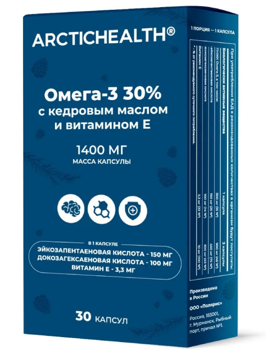 ARCTICHEALTH ОМЕГА-3 30% С КЕДРОВЫМ МАСЛОМ И ВИТАМИНОМ Е N30 КАПС ПО 1400МГ
