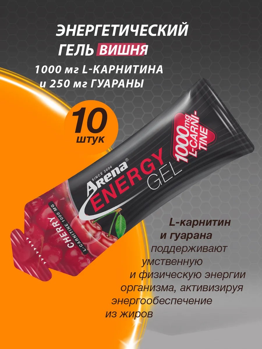 Арена Энергетический гель, 1000 мг L-карнитина, вишня, 10 шт