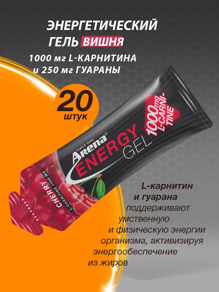 Арена Энергетический гель, 1000 мг L-карнитина, вишня, 20 шт