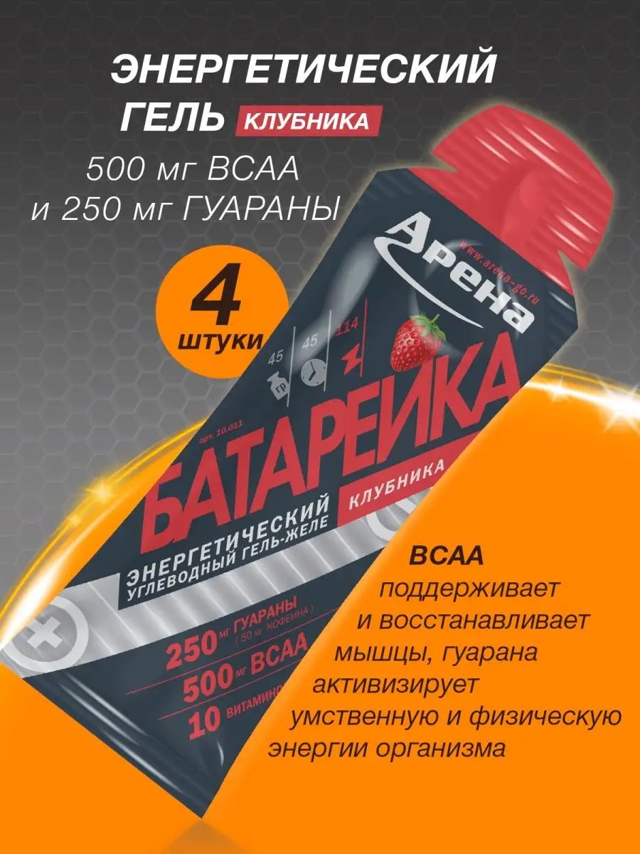 Арена Энергетический гель С ВСАА и кофеином, клубника, 4 шт