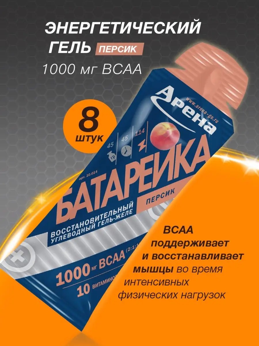 Арена Энергетический гель с ВСАА, персик, 8 шт