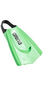 arena's unisex Powerfin Pro Training Fins are the swim fins all professional swimmers have been waiting for. Their innovative design features a sloping surface and hydrodynamic slits in the top to allow you to swim with a faster leg kick and better control. The open heel ensures the best possible ankle flexibility allowing faster upwards motion and a more powerful downward leg kick. These fins for swimming and training are made of 100% soft silicone material that provides maximum comfort and they are custom designed for the right and left foot. PVC free. Training your legs vertically using Powerfin Pro swim fins for just a few minutes today will help you improve your underwater phase. The vertical leg kick allows you both to control your body position and to make sure you are performing a proper leg kick. Test them out to see how arena's swim fins can help you improve your underwater phase after pushing off the wall. Refer to size chart for the best fit.