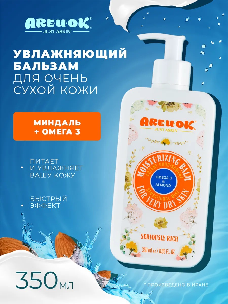 AREUOK JUST ASKIN Увлажняющий крем-бальзам, Миндаль и омега-3, 350 мл