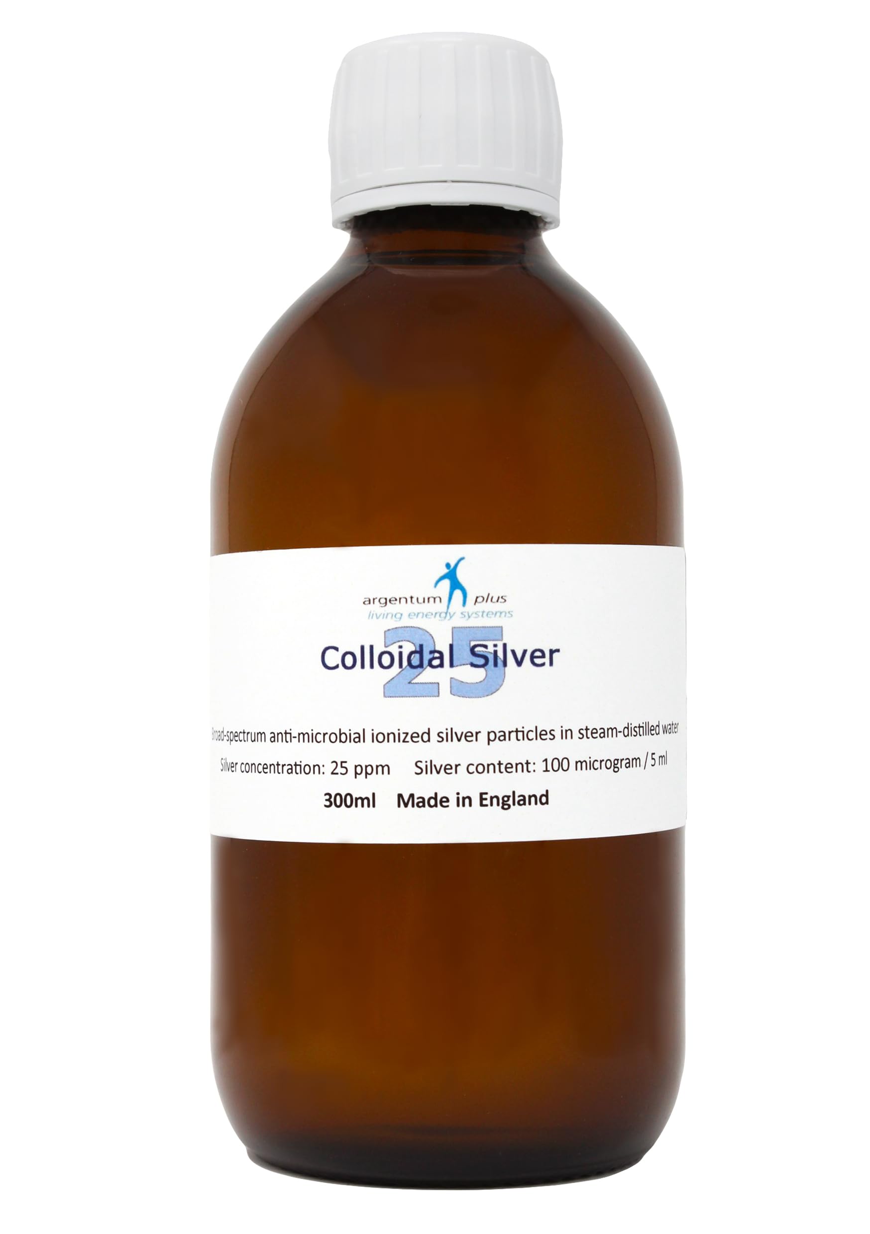 argentum plus - Colloidal Silver 25 ppm - 300 ml - in Amber Glass Bottle with 15 ml Dosage Cup
