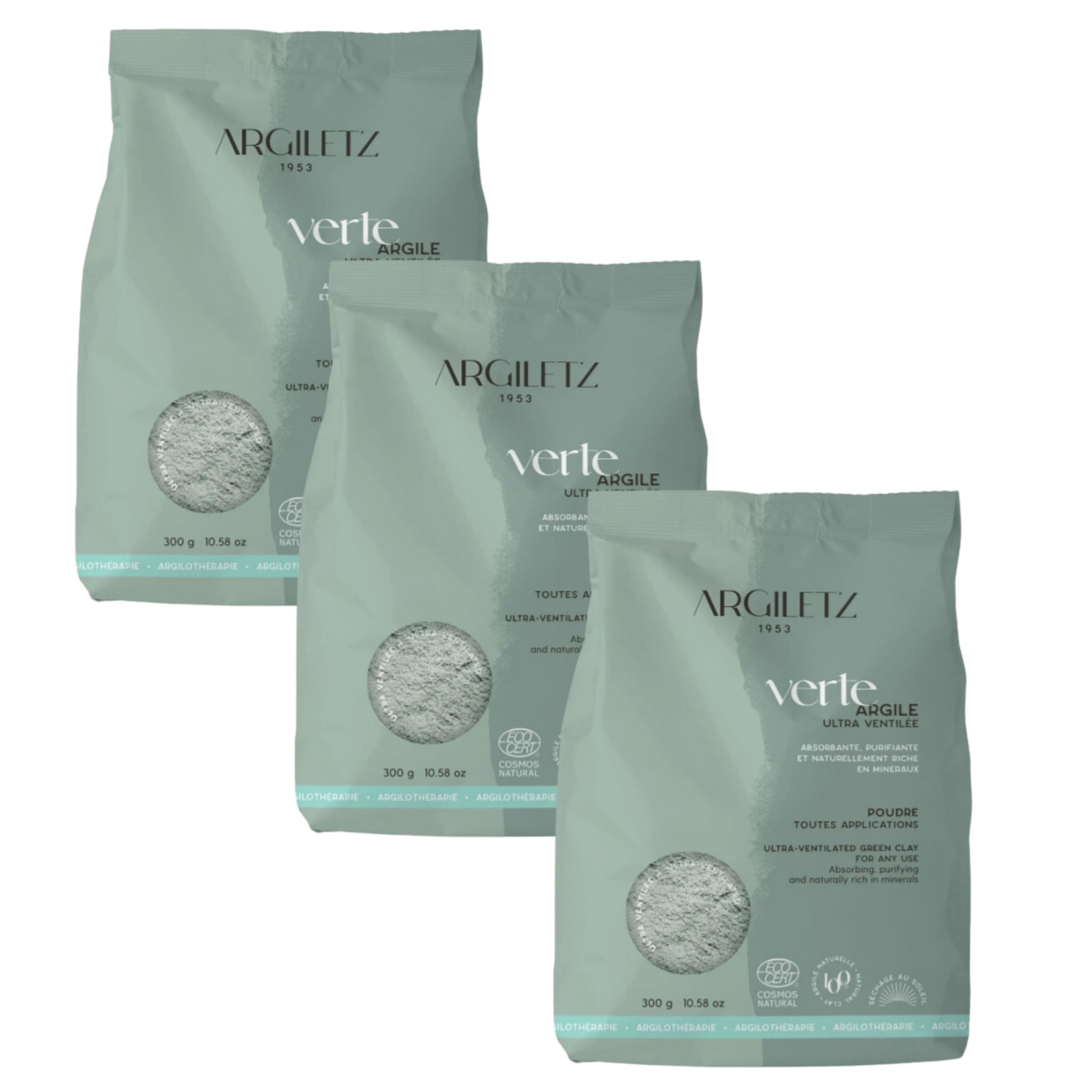 Argiletz - Ultra Ventilated Green Clay Powder 300G - Pack of 3 - Pack Price - Fast Delivery in Metropolitan France Within 3 Working Days