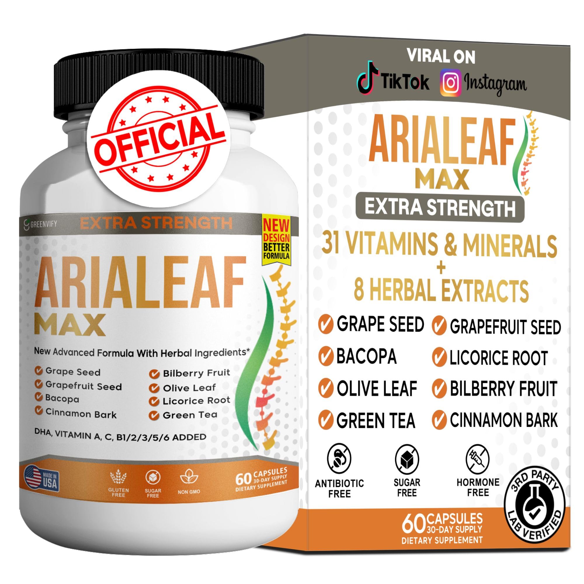 Enhance Mental Performance with Arialeaf Max Stay sharp and focused with Arialeaf Max, a powerful brain-boosting supplement designed to support memory, mental clarity, and cognitive function. This advanced formula combines natural herbal extracts, essential vitamins, and key nootropic ingredients to promote optimal brain health. Key Benefits: Supports Memory Focus – Bacopa, DMAE, and GABA help enhance cognitive function and mental clarity. Boosts Energy Brain Health – B vitamins, folate, and iron aid in maintaining energy levels and brain function. Natural Herbal Extracts – Grape seed, bilberry, green tea, and licorice root provide antioxidant and neuroprotective benefits. Safe Effective Formula – Made with premium ingredients, free from gluten, sugar, and artificial additives. How to Use: Take two (2) capsules daily with water, preferably before a meal, or as directed by your healthcare provider. Why Choose Arialeaf Max? Manufactured in the USA in a GMP-certified facility, Arialeaf Max is a high-quality brain support supplement designed to help you stay focused, energized, and mentally sharp.Made in the USA Quality Assured – Non-GMO, sugar-free, gluten-free, and manufactured in a GMP-certified facility. Boosts Mental Clarity Energy – A unique blend of nootropic ingredients helps improve concentration and alertness. Herbal Antioxidant-Rich Formula – Includes grape seed, bilberry, green tea, and licorice root to enhance cognitive wellness. Essential Vitamins for Cognitive Health – Packed with B vitamins, zinc, folate, and iron to support energy and brain function. Advanced Brain Memory Support – Formulated with Bacopa, GABA, and DMAE to promote mental clarity, memory, and focus.