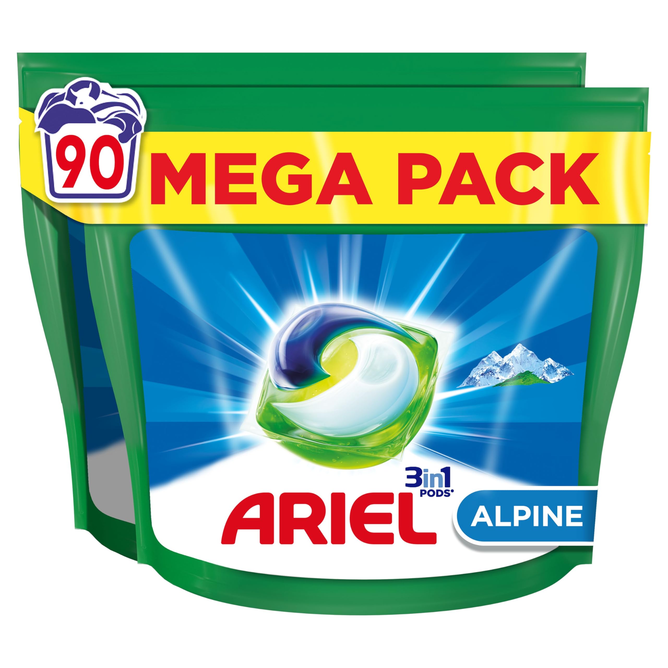 Ariel 3in1 PODS Liquid Detergent Capsules 90 Washes Alpine Quick Dissolving Impeccable Cold and Short Cycle