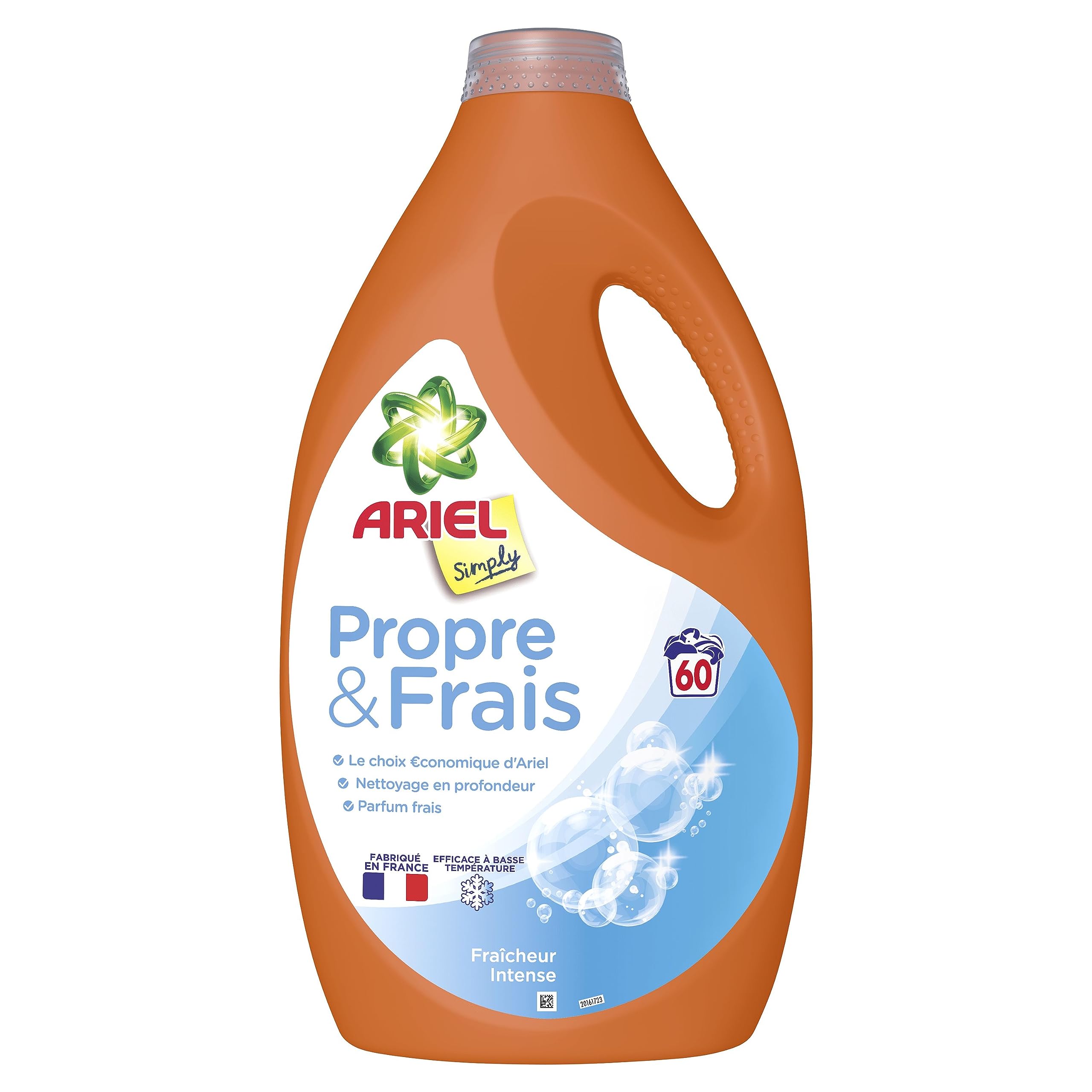 Ariel Simply Intense Freshness Liquid Laundry Detergent is Ariel's economical choice. It guarantees an intense wash and cold wash efficiency, leaving your laundry simply clean and fresh. In addition, Ariel Simply Intense Freshness Liquid Laundry Detergent features a fresh, energizing fragrance that leaves your clothes smelling pleasantly clean. Ariel Simply Intense Freshness Liquid Laundry Detergent is made in France and packaged in a recyclable bottle. You can also use Ariel Simply Intense Freshness Liquid Laundry Detergent to pre-treat stains with the green cap, then place your clothes in your washing machine. For best results, put the dosing cap containing Ariel liquid laundry detergent in the washing machine drum. For environmental reasons, we do not supply dosing caps with all bottles. They are available free of charge on the ariel-info.com website. INGREDIENTS 5-15 Anionic Surfactants,Made in France and recyclable: Ariel liquid laundry detergent is made in France and packaged in a recyclable bottle. Ariel's economical choice: Ariel Simply liquid laundry detergent is Ariel's economical choice. It guarantees a thorough clean at an affordable price. Intense fresh scent: Ariel liquid laundry detergent features a fresh and energizing scent. Freshness: Ariel laundry detergent leaves a pleasantly clean scent and a fresh feeling on your clothes. Deep cleaning and cold-wash effectiveness: Ariel Simply Intense Fresh liquid laundry detergent offers a thorough clean and cold-wash effectiveness. La lessive liquide Ariel Simply Fraîcheur Intense est le choix économique d'Ariel. Elle garantit un lavage intense et une efficacité à froid, laissant votre linge tout simplement propre et frais. De plus, la lessive liquide Ariel Simply se caractérise par un parfum frais et énergisant qui laisse une agréable senteur de propreté sur vos vêtements. La lessive liquide Ariel Simply est fabriquée en France et conditionnée dans une bouteille recyclable. Vous pouvez aussi utiliser la lessive liquide Ariel Simply Fraîcheur Intense pour pré-traiter les taches avec le bouchon vert, puis placer vos vêtements dans votre lave-linge. Pour de meilleurs résultats, mettez le bouchon de dosage contenant la lessive liquide Ariel dans le tambour de la machine à laver. Pour des raisons environnementales, nous ne fournissons pas de bouchon de dosage avec toutes les bouteilles. Ils sont disponibles gratuitement sur le site web ariel-info.com. INGRÉDIENTS 5-15 Agents De Surface Anioniques,Fabriqué en France et recyclable : La lessive liquide Ariel est fabriquée en France et conditionnée dans une bouteille recyclable. Le choix économique d'Ariel : La lessive liquide Ariel Simply est le choix économique d'Ariel. Elle garantit un lavage en profondeur à un prix abordable. Parfum fraîcheur intense : La lessive liquide Ariel se caractérise par un parfum frais et énergisant. Fraîcheur : La lessive Ariel laisse un parfum agréable de propreté et une sensation de fraîcheur sur vos vêtements. Nettoyage en profondeur et efficacité à froid : La lessive liquide Ariel Simply Fraîcheur Intense offre un lavage en profondeur et une efficacité à froid.