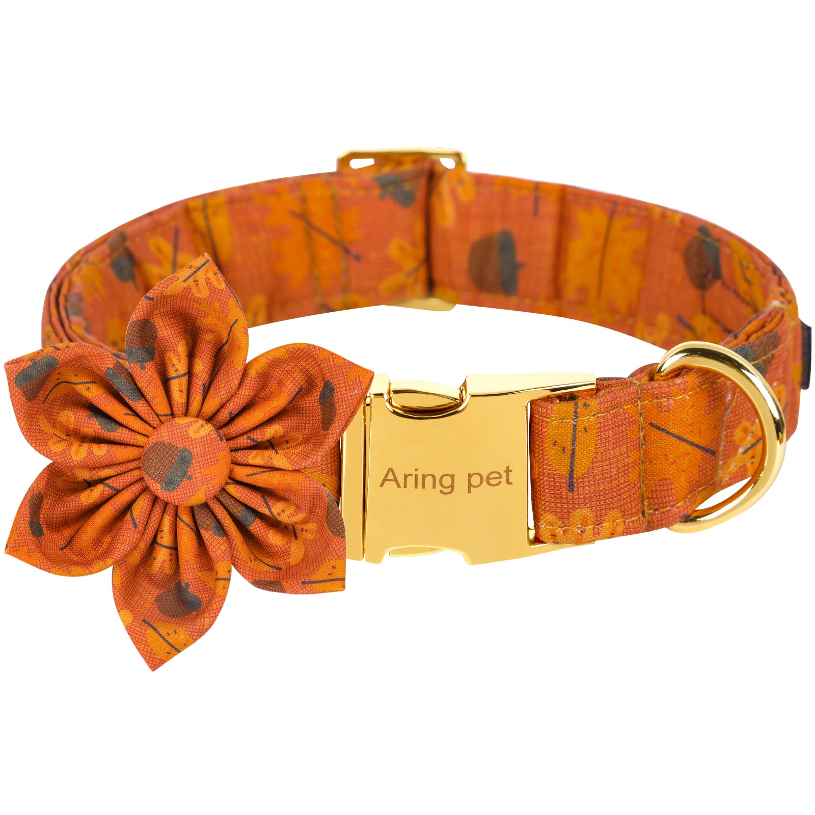 ARING PET Hundehalsband mit BlumeHerbst Ahornblatt Hundehalsband Blume, Entzückende Junge und Mädchen Baumwolle Herbst Hunde Blumenhalsband Geschenke mit Metallschnalle für Kleine Mittlere Große XS D: Ahornblatt
