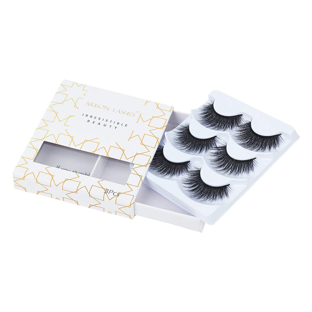 Arison Lashes 3 Paare Falsche Wimpern 6D Nerzhaar Wimpern NatüRliche Schwarz Lange Pure Handgemacht Wiederverwendbar (6DGY25) E6DGY25
