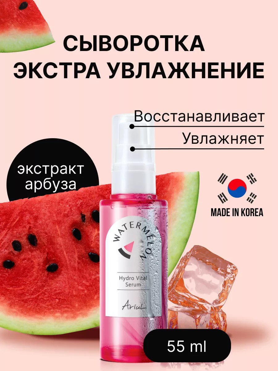 Сыворотка для лица Ariul Watermelon Hydro Vital Serum помогает восстановить уровень влаги и вернуть чувство комфорта коже, склонной к сухости и обезвоженности. Это прекрасное средство для ухода за сухой кожей.