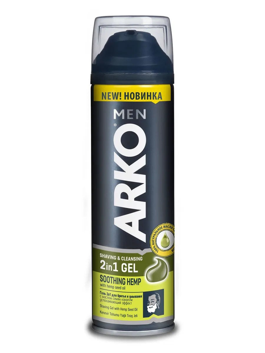 Первый в истории Arko Men гель 2 в 1 для бритья и умывания с маслом семян конопли с успокаивающим эффектом обеспечивает мягкое комфортное бритье благодаря специально разработанной формуле.