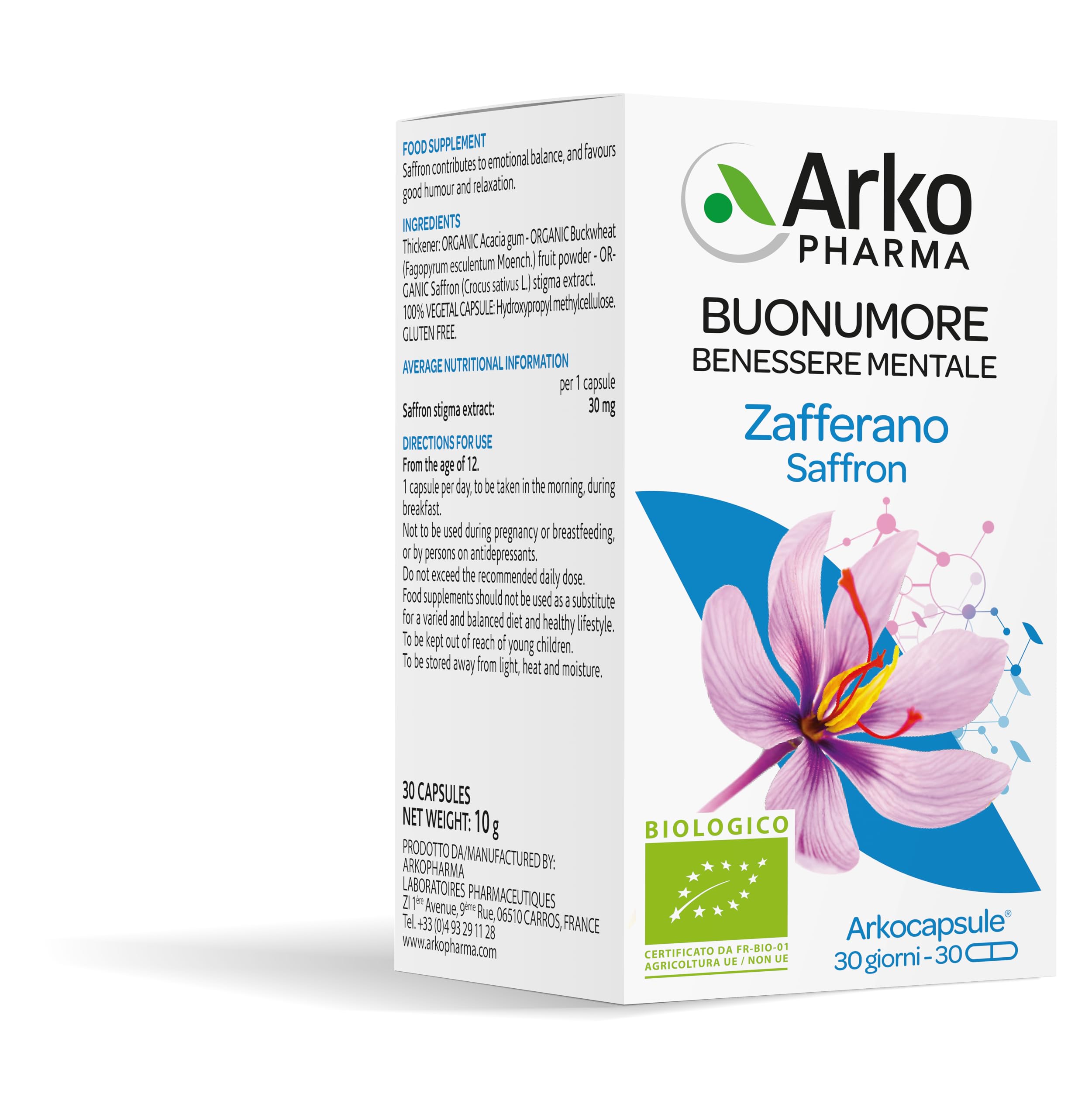 Arkofarm Arkocps Zafferano Bio 30 Capsules SAFETY WARNING For external use only. Avoid contact with eyes. Keep away from open flames or direct heat sources.