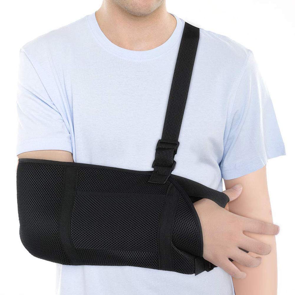 SATISFACTION GUAREED: We are confident in the quality of our arm sling, which is why we offer a money-back guaree. If you encounter any problems with our product, please don't hesitate to us. We will either provide you with a full refund or a replacement, ensuring your complete satisfaction. Your recovery and well-being are our top priorities. CONVENIENT AND ADJUSTABLE: The front-facing micro hook & loop adjust allows for easy one-handed adjustment, ensuring a secure fit. Whether you're at home or outdoors, our arm sling is suitable for both men and women. It can be worn on either the left or right arm, providing versatility and tailored support. EFFECTIVE PAIN RELIEF: Our arm sling is specifically designed to cushion and injured areas, reducing pain and supporting the healing process. It offers superior pain relief and provides fixation for post-care and treatment of various injuries, including shoulder injuries. Experience the comfort and support you need for a speedy recovery. BREATHABLE AND LIGHTWEIGHT: The arm pouch is made of knitted mesh fiber, offering superior airflow for maximum breathability. The lightweight and flexible neoprene material ensures all-day comfort. Additionally, two interior mesh pockets keep essential items close at hand for easy access. Stay cool and comfortable throughout the day. UNMATCHED COMFORT: Our shoulder strap features an ergonomic design with cushy neoprene padding that conforms to your shoulder, providing unprecedented comfort. The built-in thumb loops reduce hand fatigue, and the generously padded strap ensures comfortable extended wear.